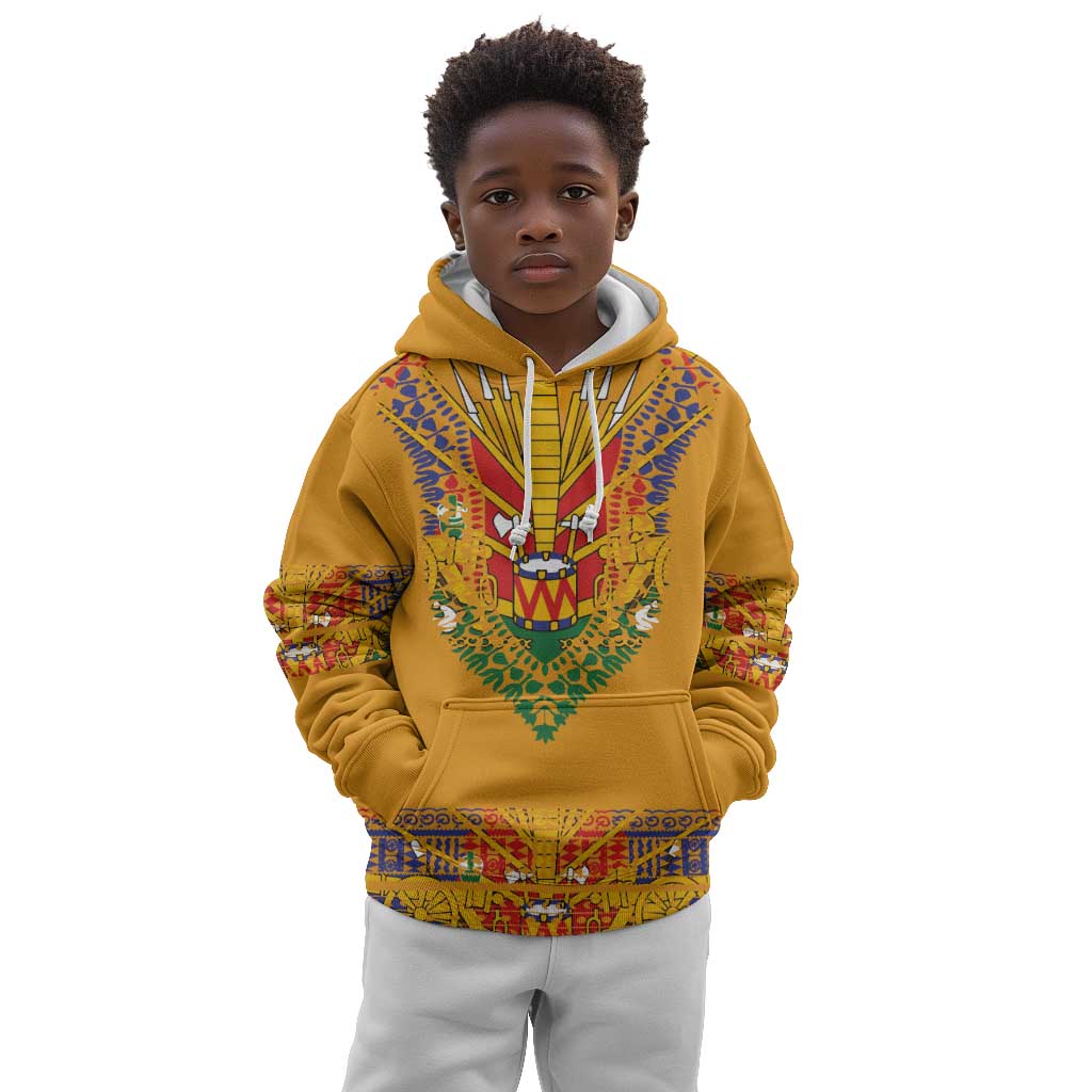 Haiti Flag Kid Hoodie Traditional Dashiki Yellow Color