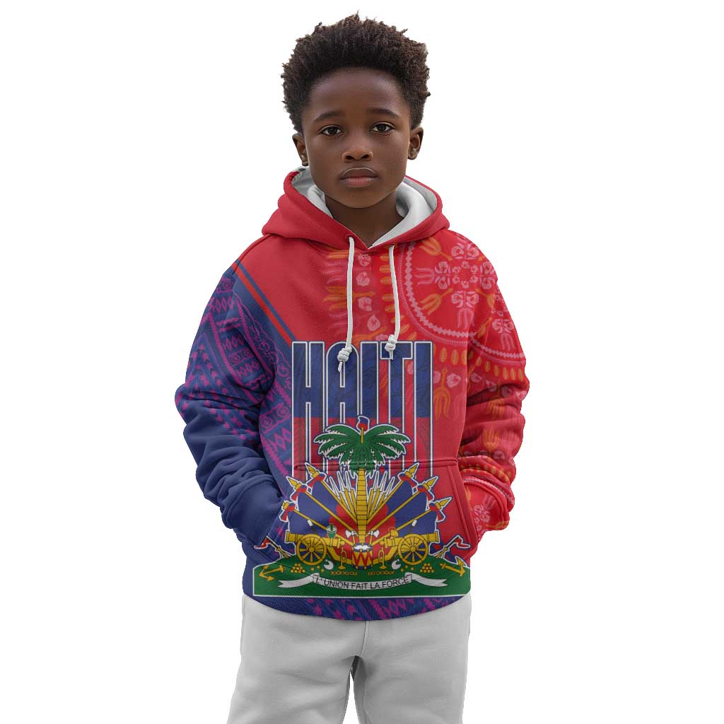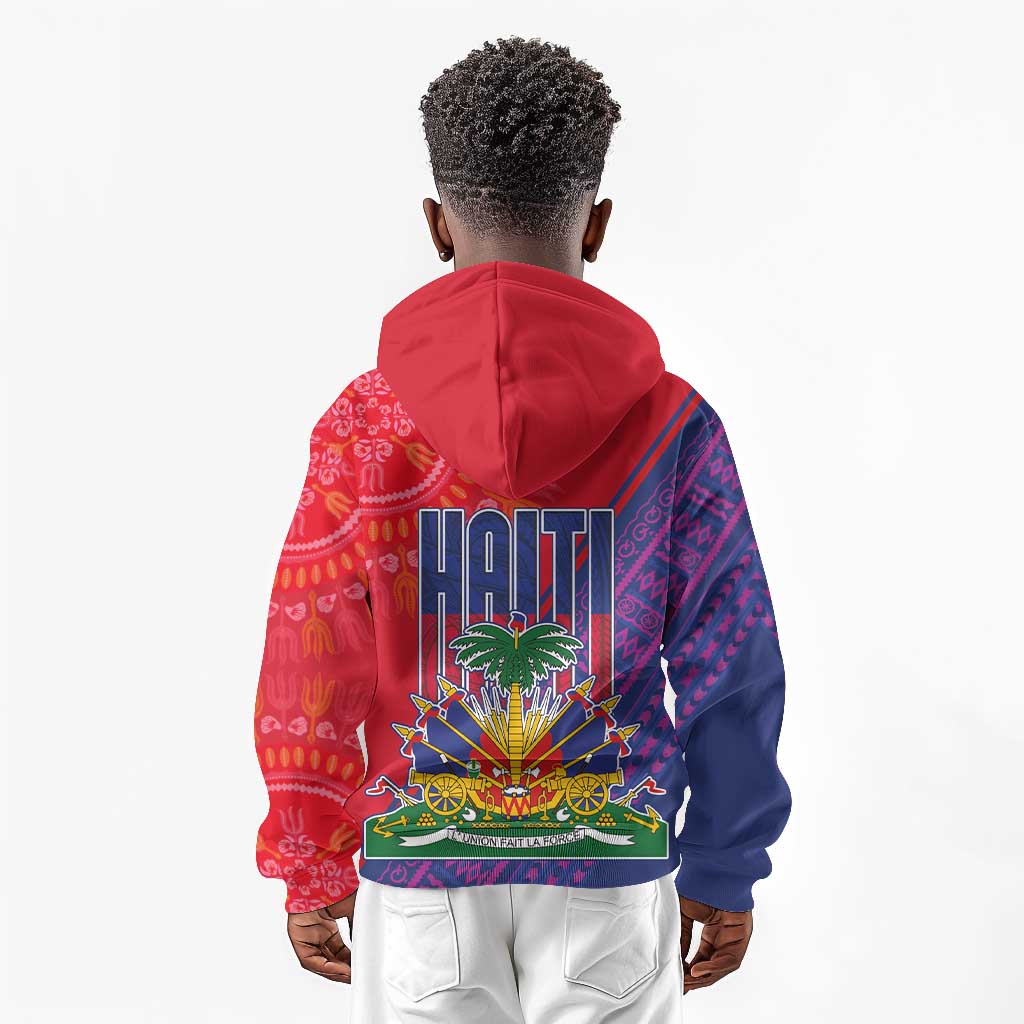 Haiti National Emblem Kid Hoodie Dashiki and Polynesian Pattern