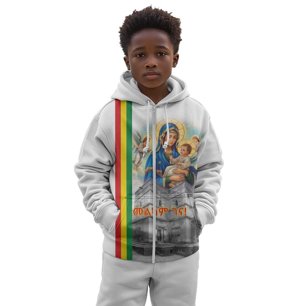 Melkam Gena Ethiopia Kid Hoodie Saint Mary Lalibela Churches