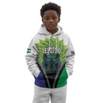 Personalised Afro Lesotho Kid Hoodie Black Rhinoceros Aloe Polyphylla