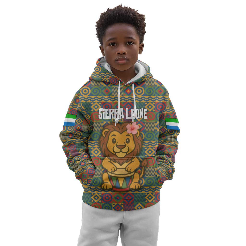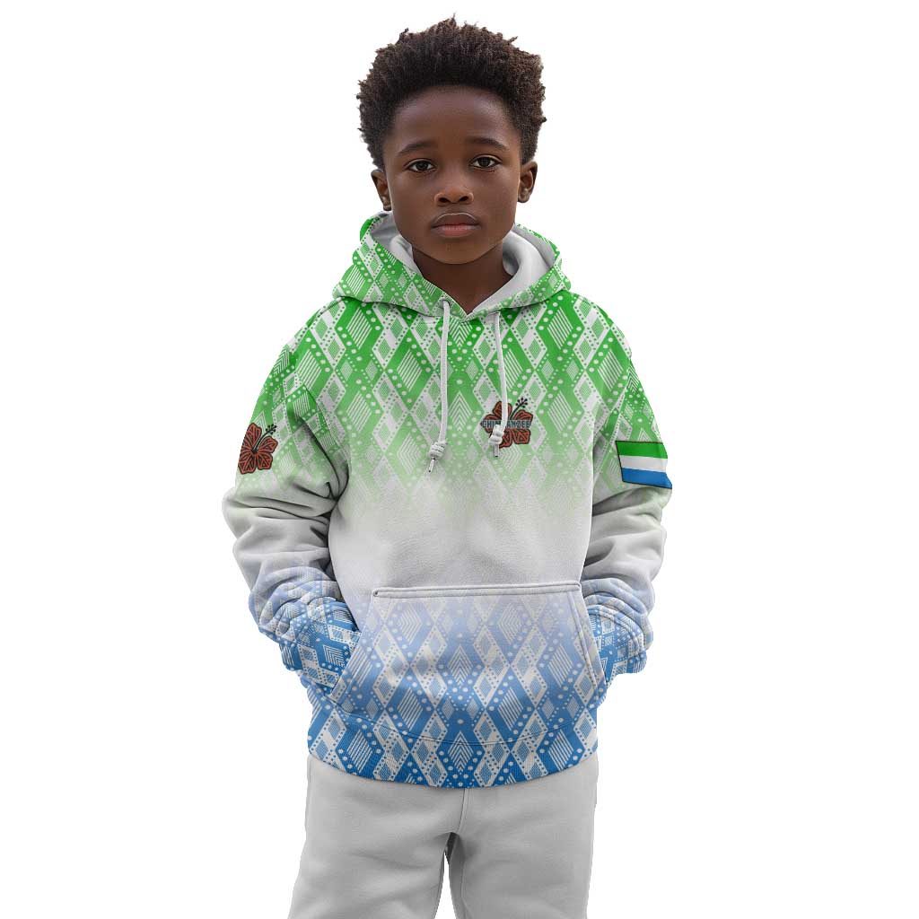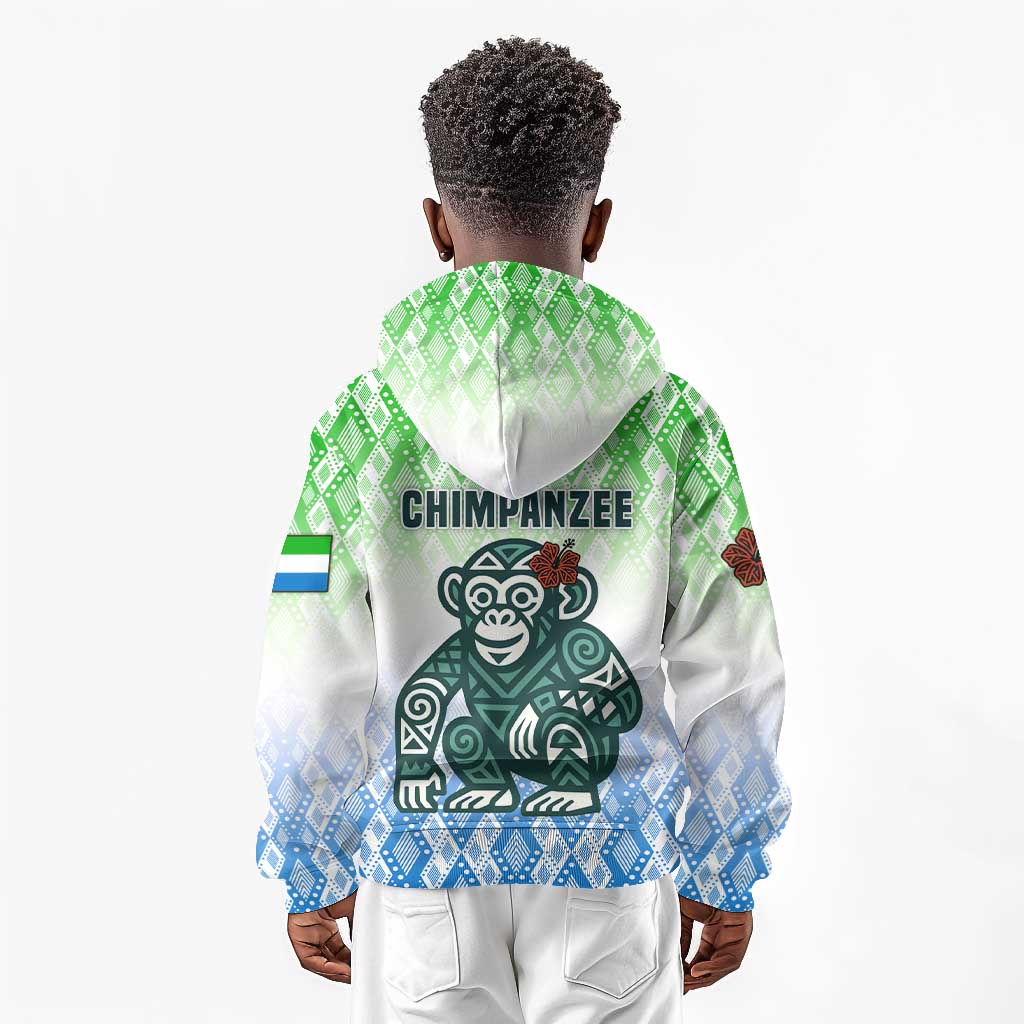 Sierra Leone Kid Hoodie - Tribal Chimpanzee Design and Green Blue Gradient Pattern