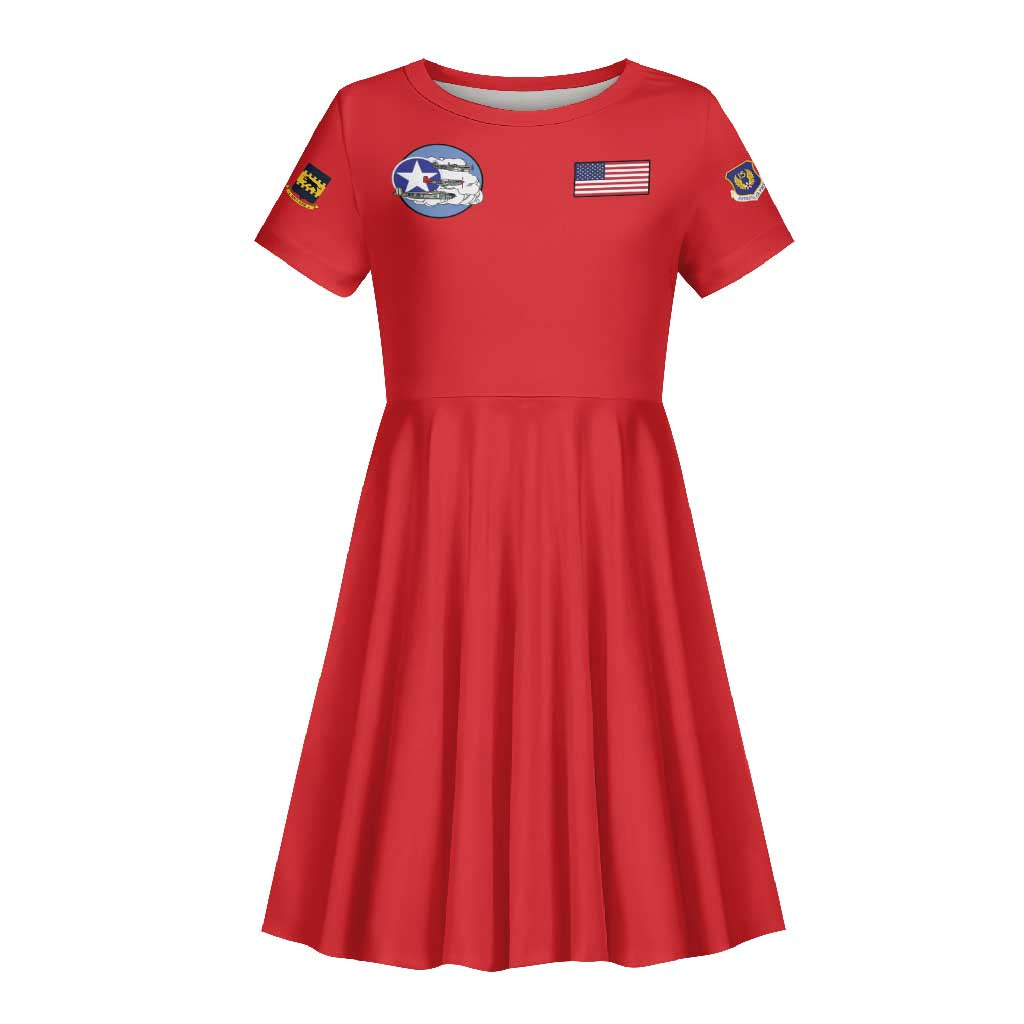 African American Aviators WWII Kid Short Sleeve Dress Tuskegee Red Tails Airmen Red