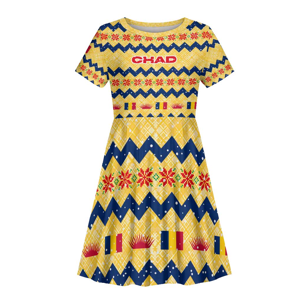 Chad Christmas Kid Short Sleeve Dress National Coat of Arms, and Festive Motif