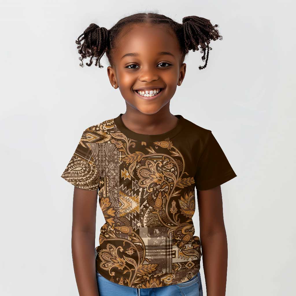 Afro Floral mix Maasai Shuka Kid T shirt Gold Moitf