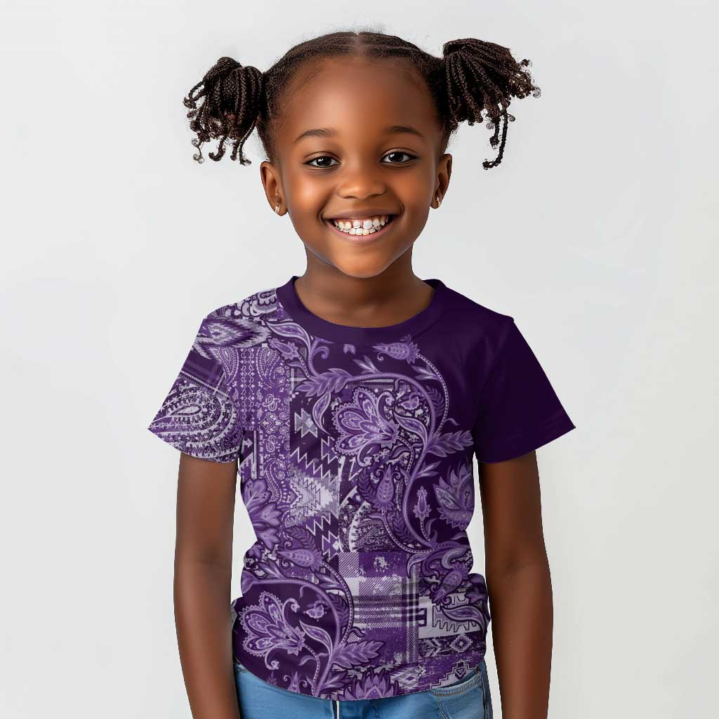 Afro Floral mix Maasai Shuka Kid T shirt Purple Moitf