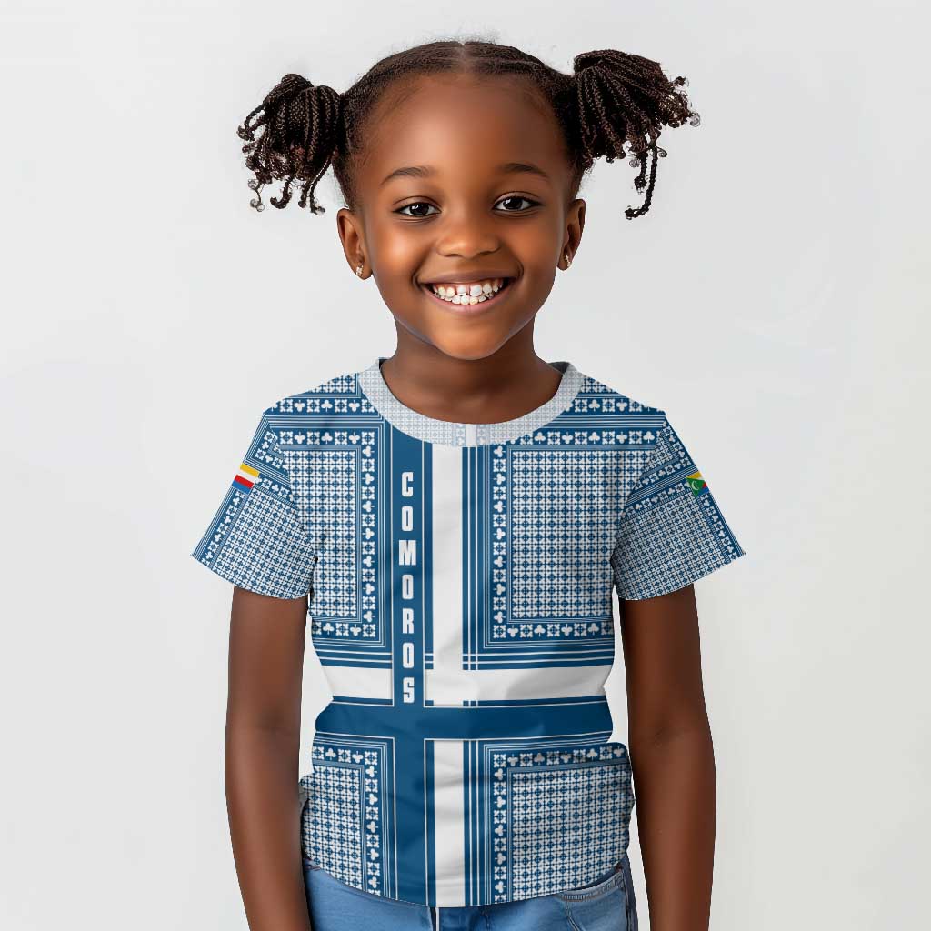 Comoros Kid T shirt - Green Black Yellow Swirl Design and National Emblem Pattern