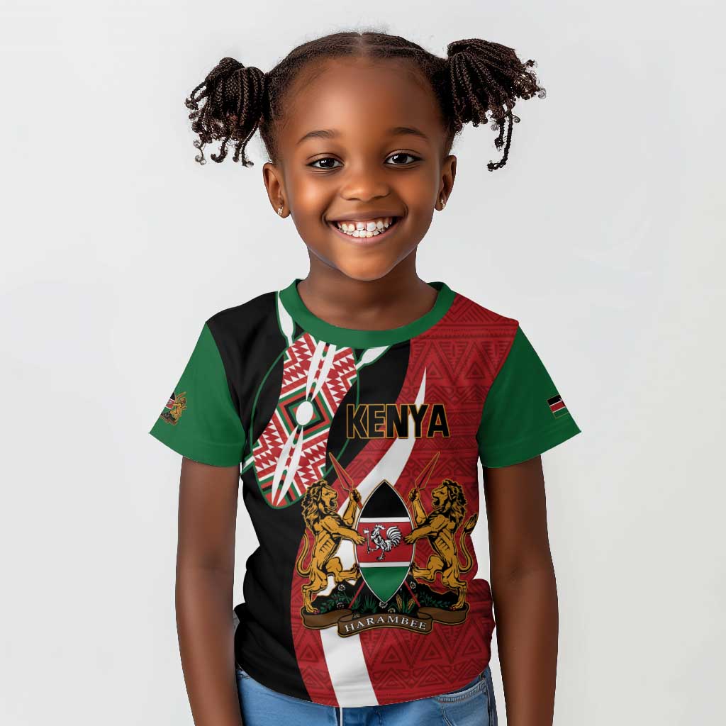 Custom Kenya Football Kid T shirt Go Harambee Stars African Pattern