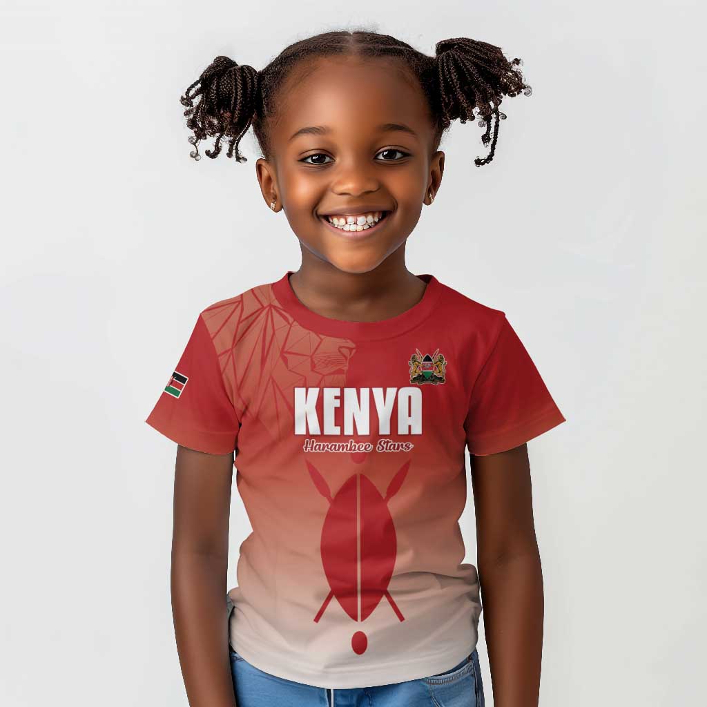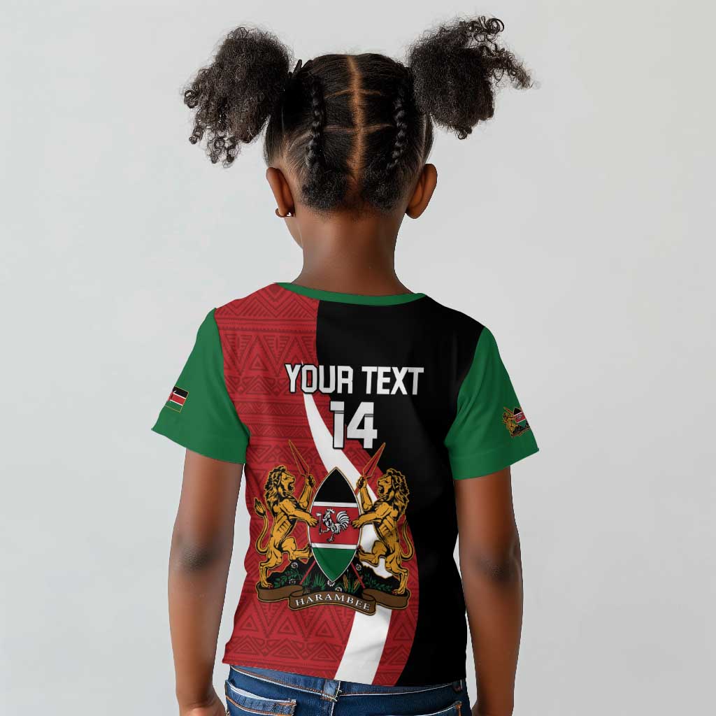 Custom Kenya Football Kid T shirt Maasai Shield Coat Of Arms Style