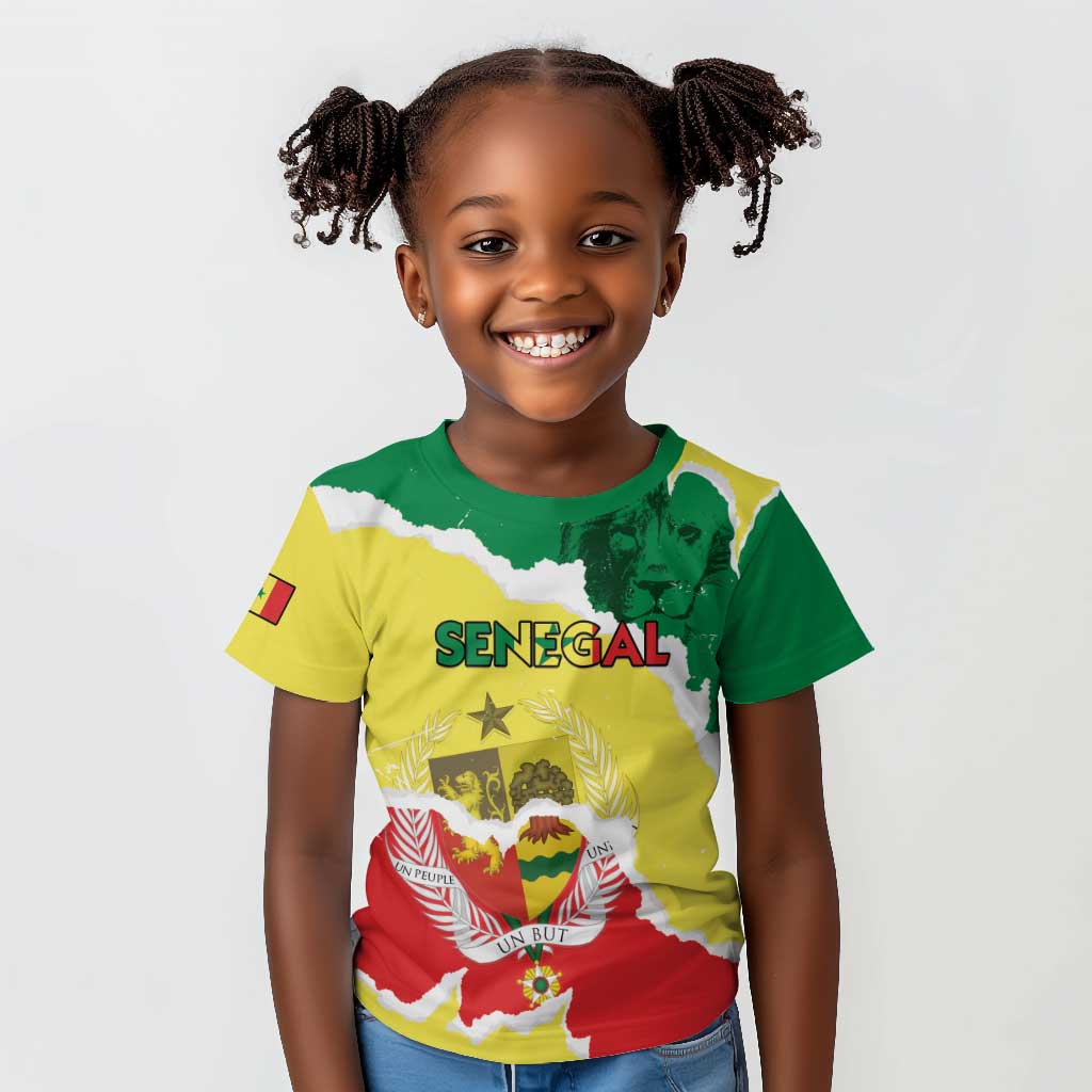 Custom Senegal Beach Soccer 2025 Kid T shirt Go Champions - Grunge Style