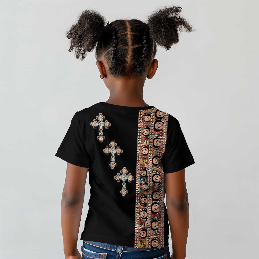 Ethiopia Angels Tilet With Cross Kid T shirt Black Color