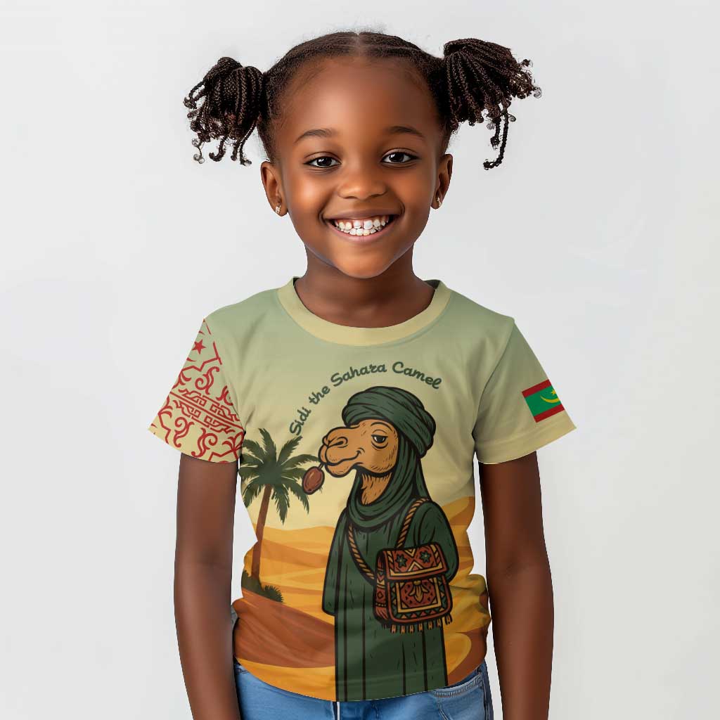Mauritania Kid T shirt - Sidi the Sahara Camel Cartoon and Desert Caravan Design