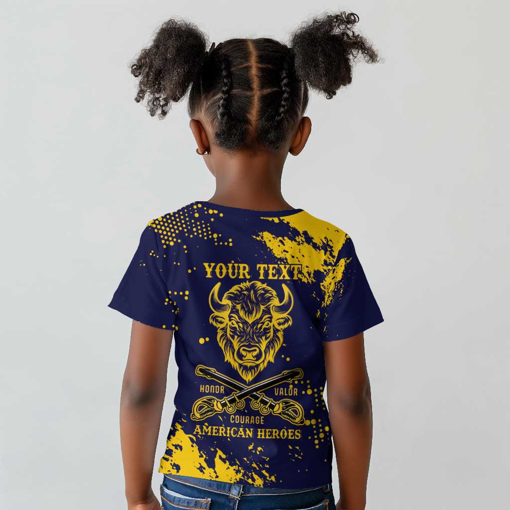 Personalized African-American Heroes Kid T shirt Bison Buffalo Soldiers - Blue Grunge Style