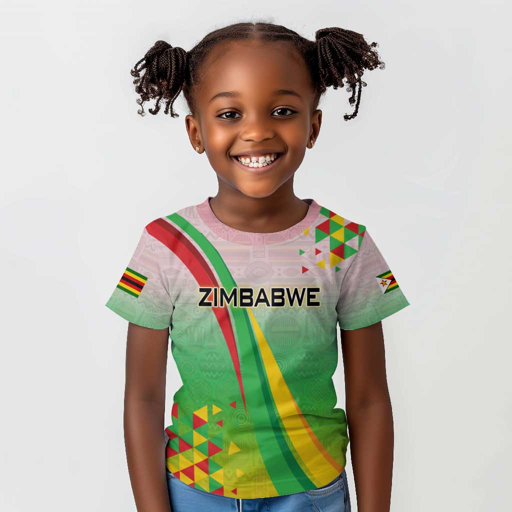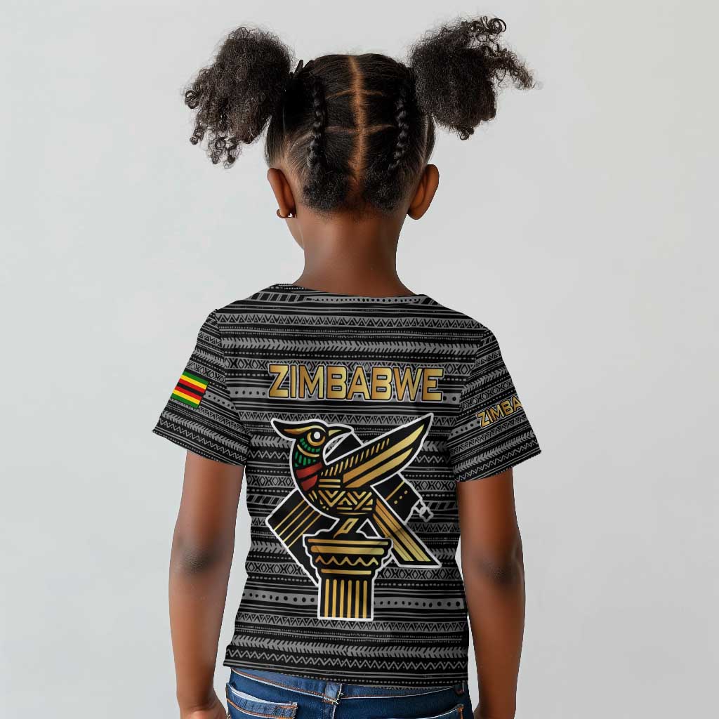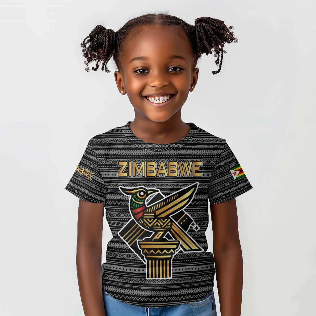 Zimbabwean Bird Statue Kid T shirt Tribal Pattern Flag Patch and Heritage Symbol