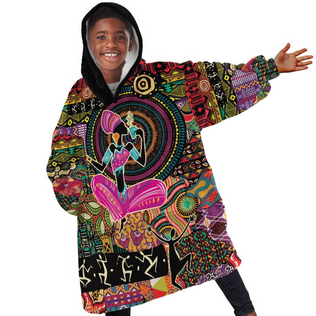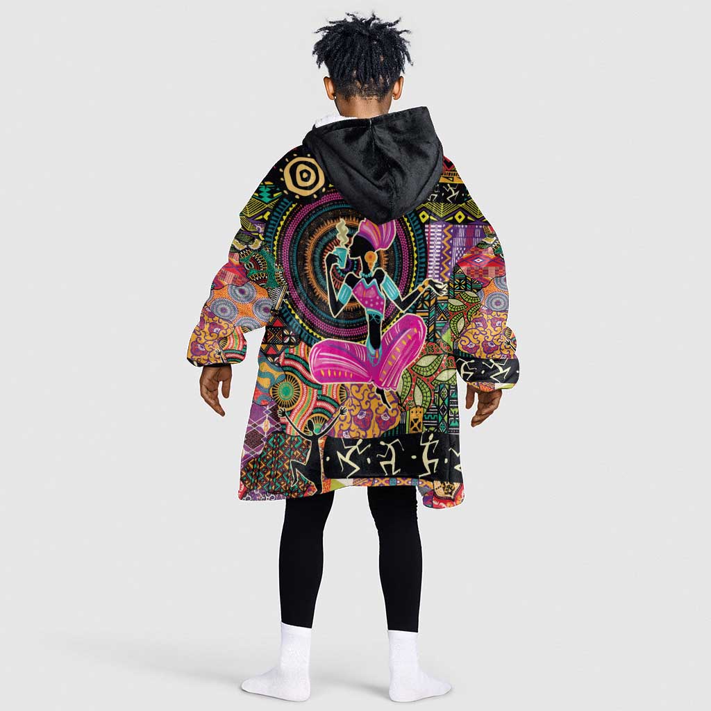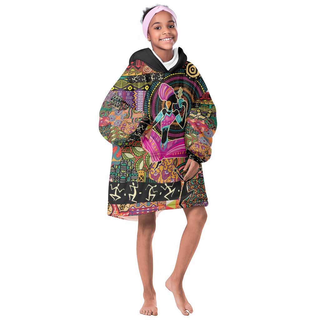 African Women Ethnic Motifs Kid Wearable Blanket Hoodie