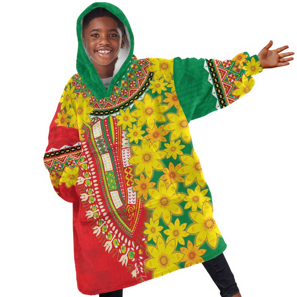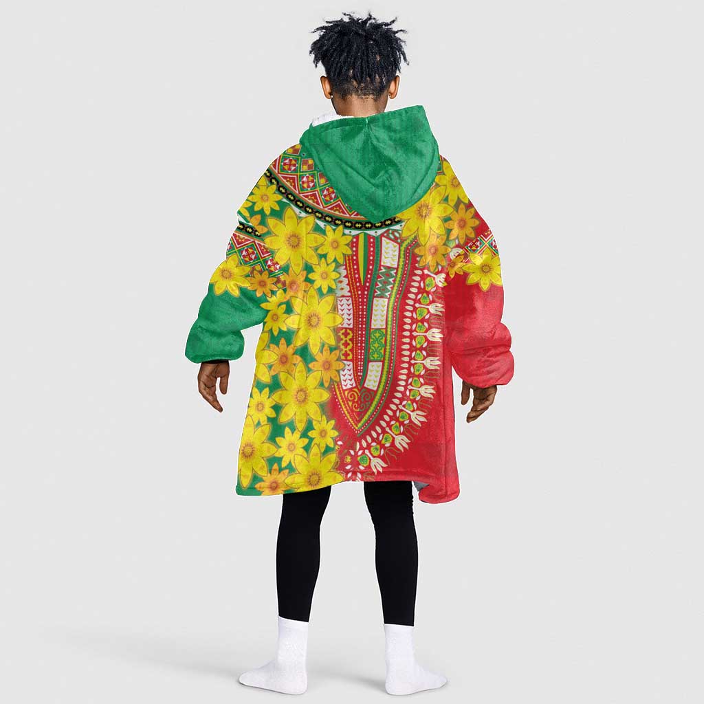 Afro Ethiopian New Year Kid Wearable Blanket Hoodie Enkutatash Adey Abeba Flower Art