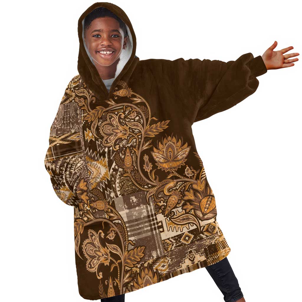 Afro Floral mix Maasai Shuka Kid Wearable Blanket Hoodie Gold Moitf