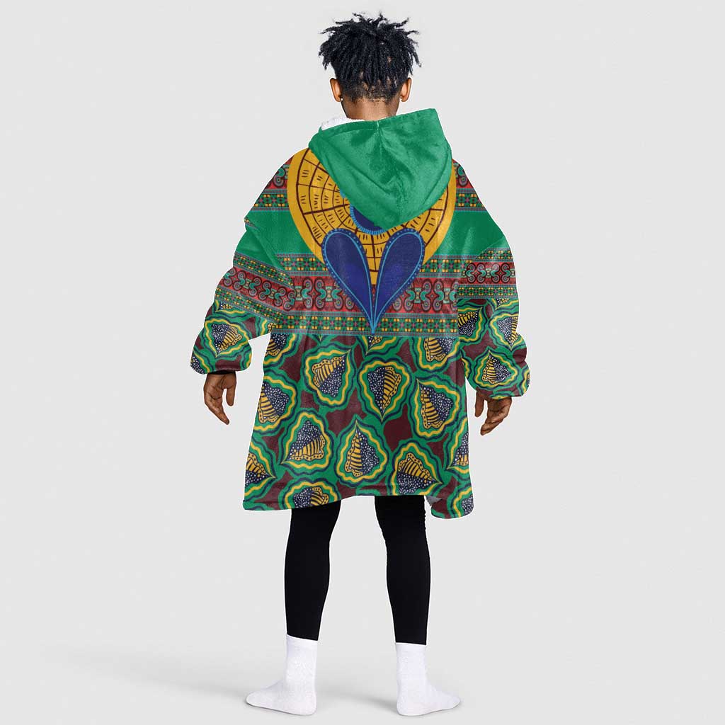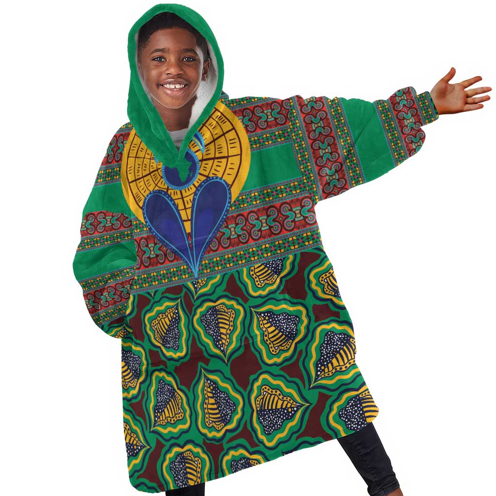 Afro Pattern Traditional Kanga Style Kid Wearable Blanket Hoodie