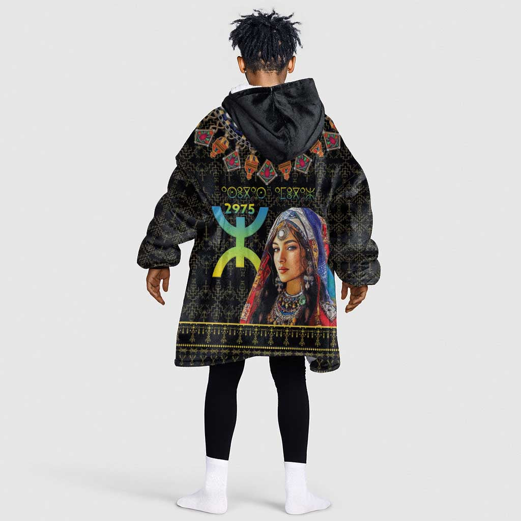 Assegwas Ameggaz Yennayer Kid Wearable Blanket Hoodie Women Amazigh - Berber Pattern