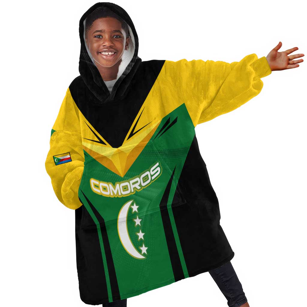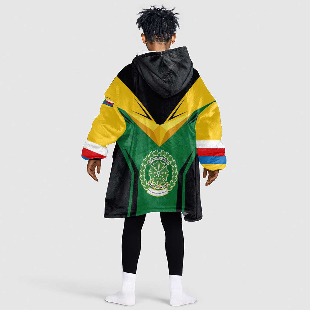 Comoros Kid Wearable Blanket Hoodie - National Colors Green Yellow Black Crescent Moon and Stars Emblem