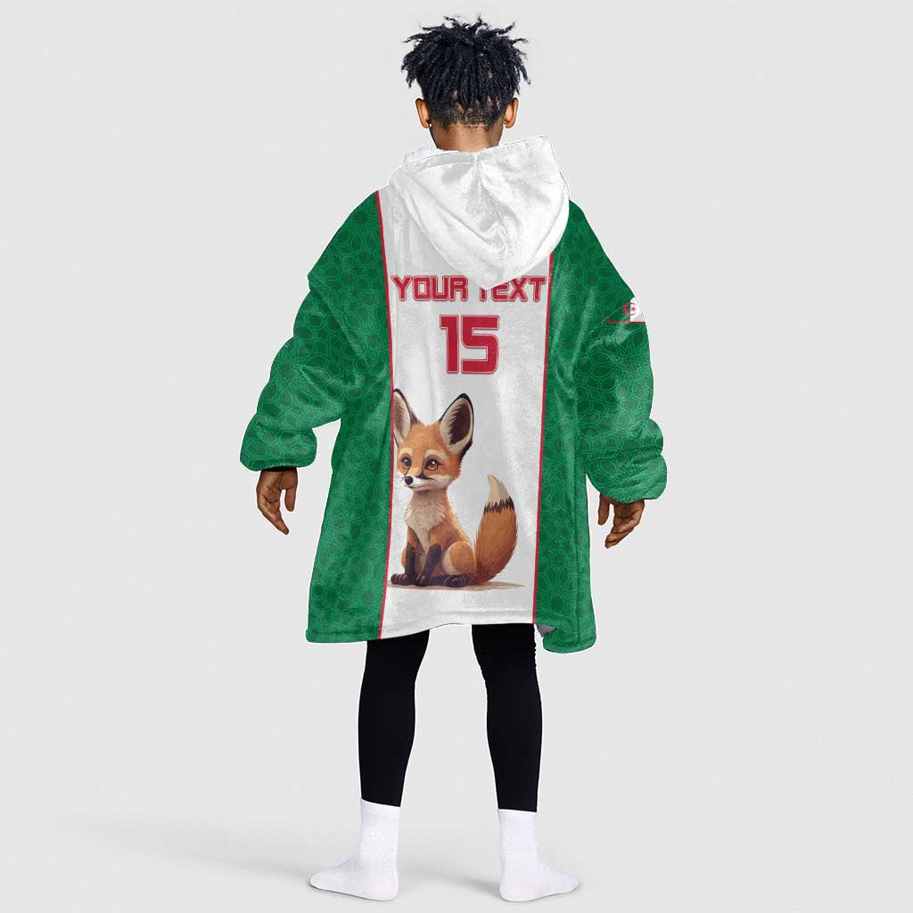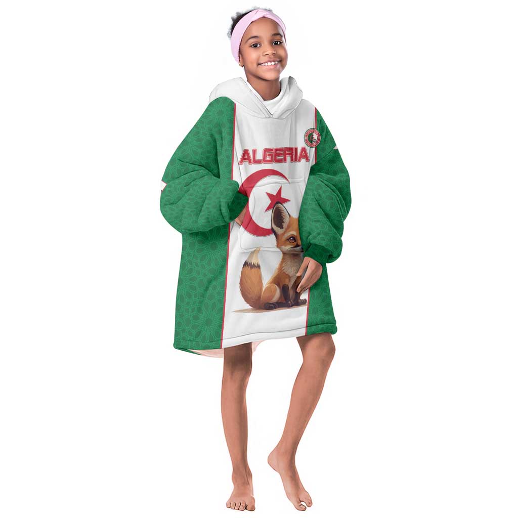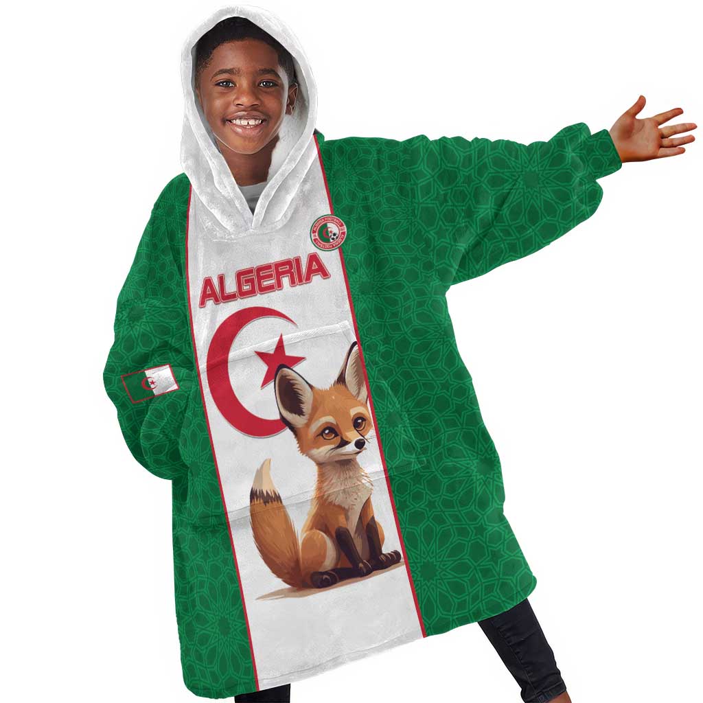 Custom Algeria Football Kid Wearable Blanket Hoodie Fennec Foxes With Islamic Pattern