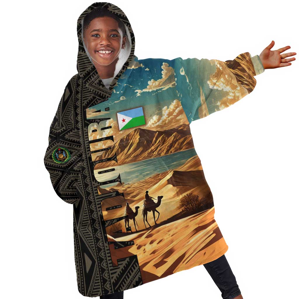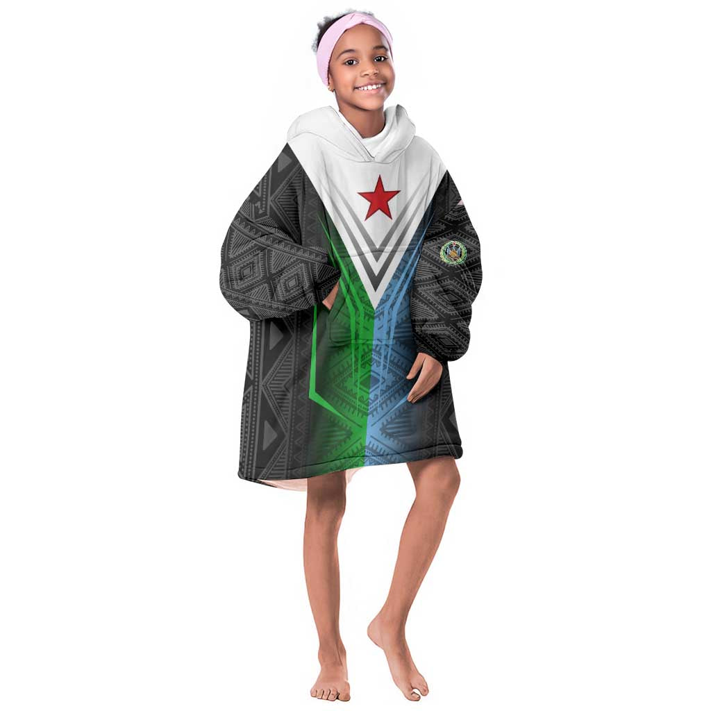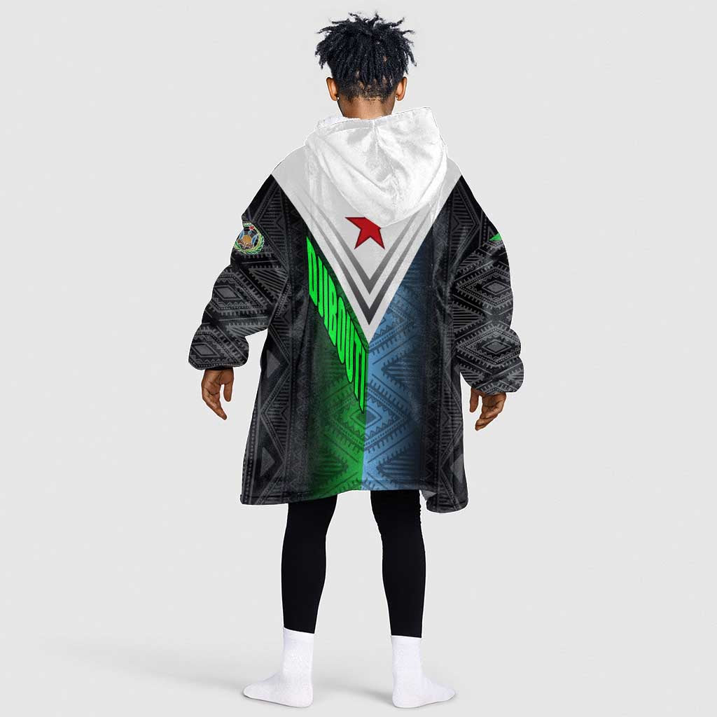 Djibouti Africa Kid Wearable Blanket Hoodie Tribal Geometry Meets National Colors and Red Star Boldness
