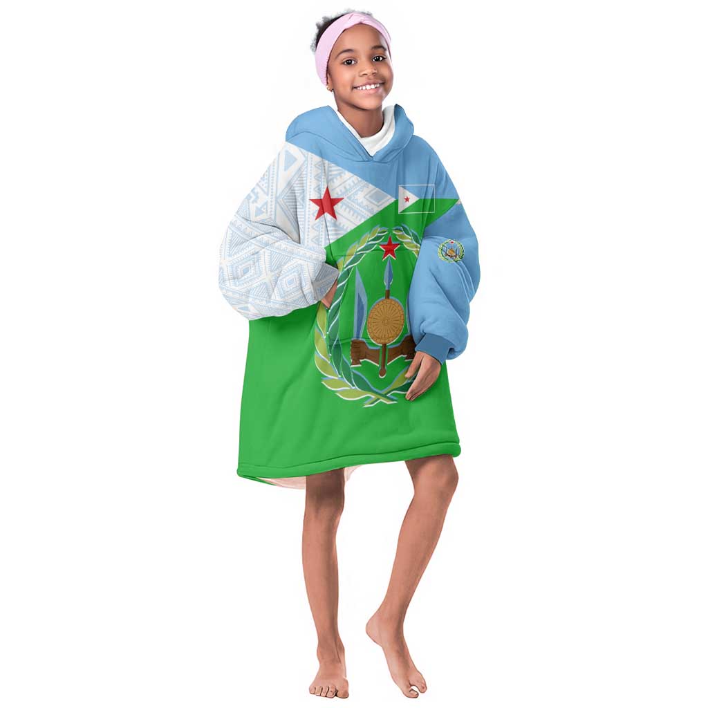 Djibouti Kid Wearable Blanket Hoodie Flag Tribal Motifs and Red Star Symbol of Unity