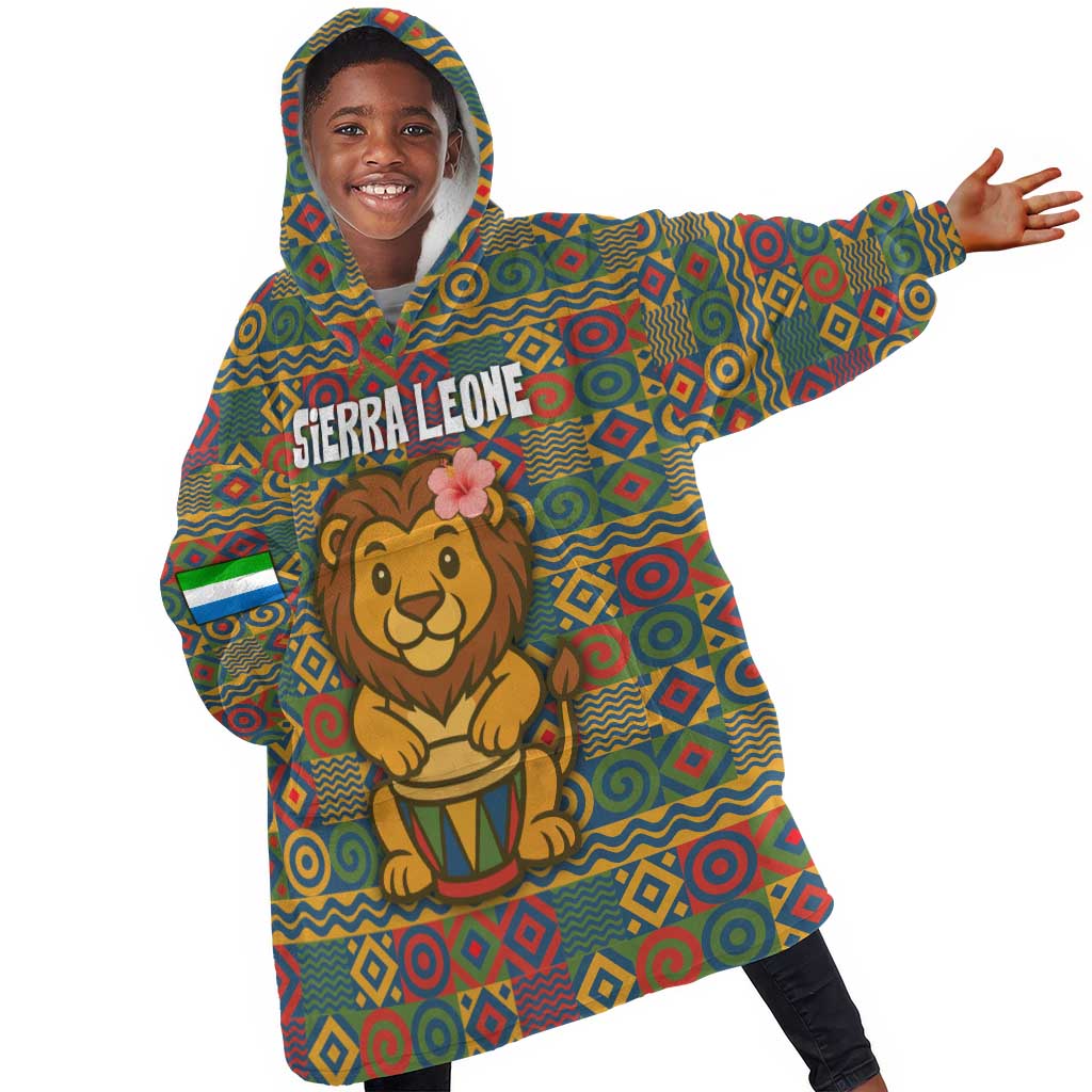 Gabon Kid Wearable Blanket Hoodie - Tribal Print and Fierce Panther Graphic in National Flag Colors