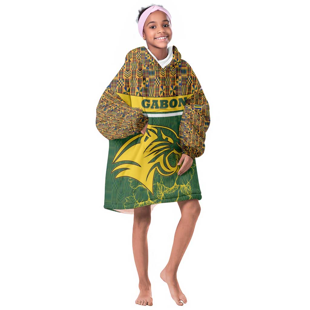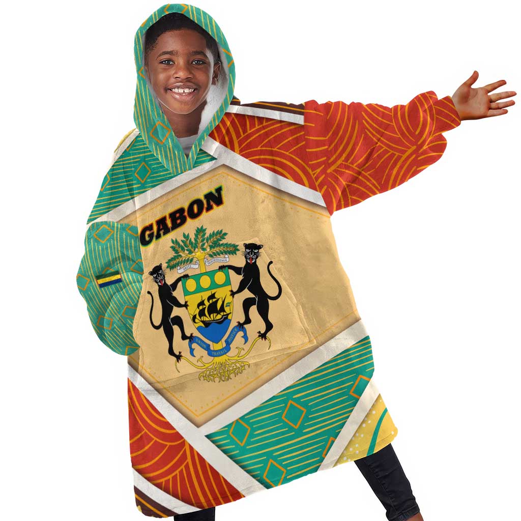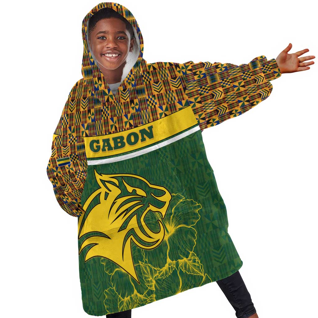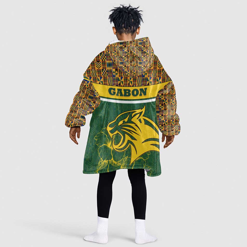 Gabon Kid Wearable Blanket Hoodie - Tribal Print and Fierce Panther Graphic in National Flag Colors TS04