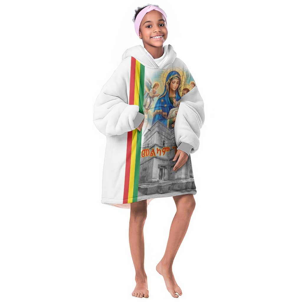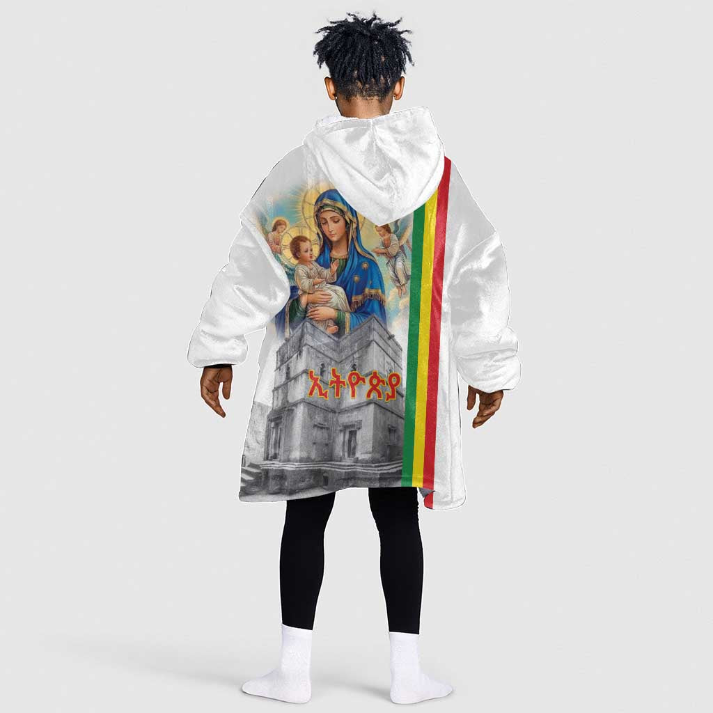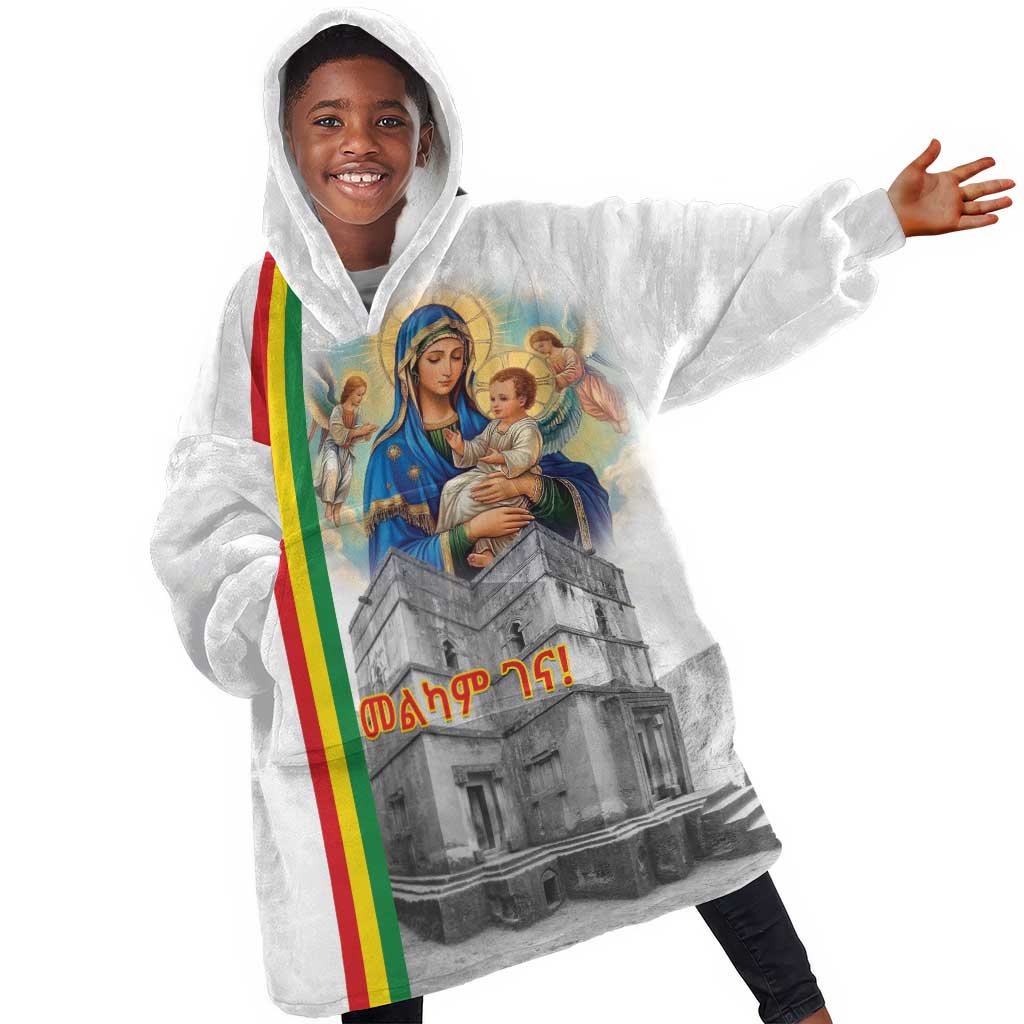 Melkam Gena Ethiopia Kid Wearable Blanket Hoodie Saint Mary Lalibela Churches