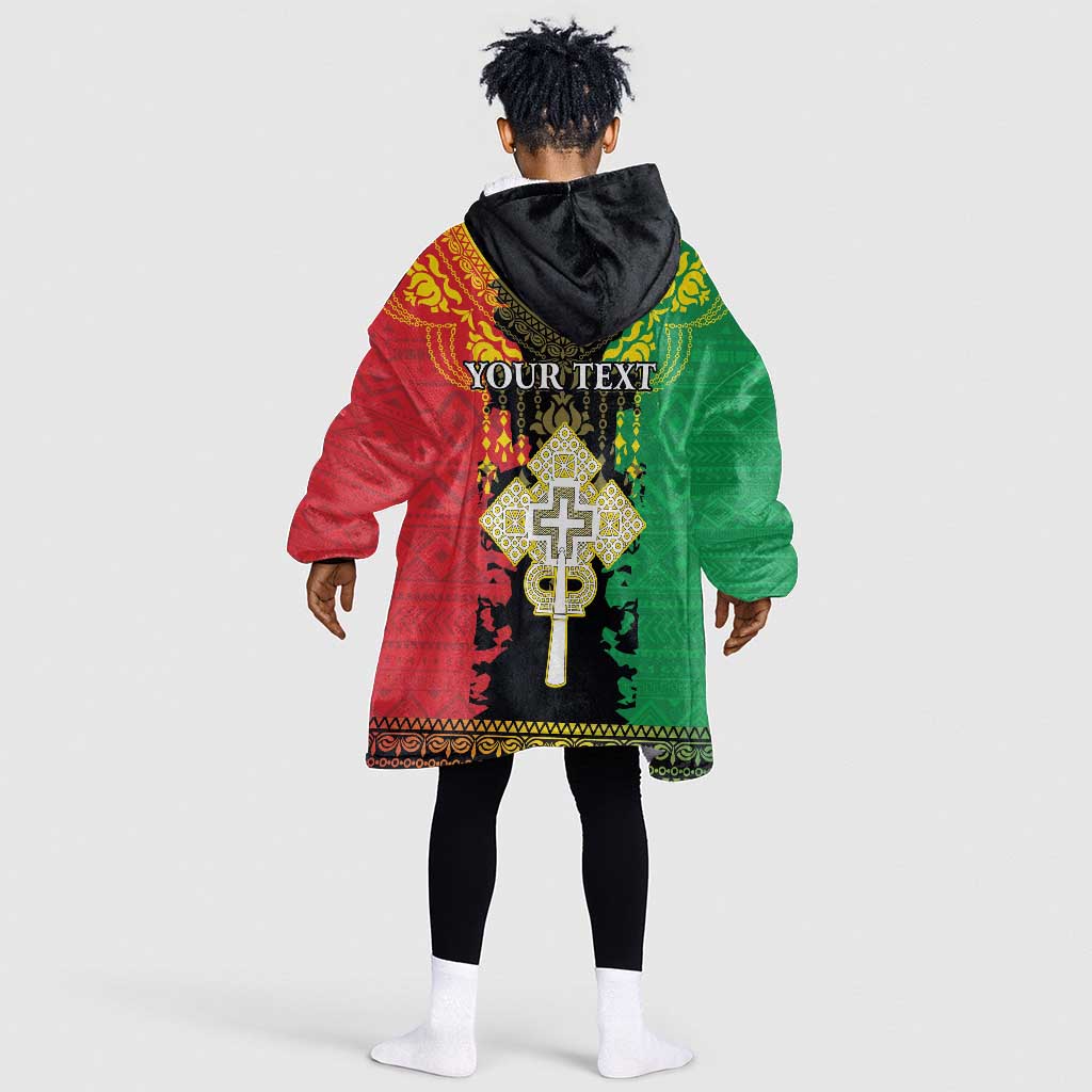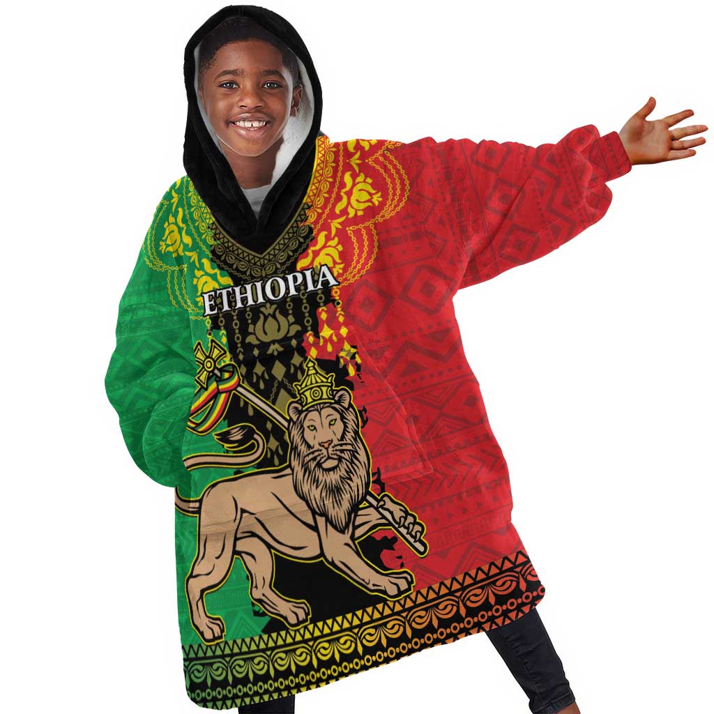 Personalised Afro Ethiopia Kid Wearable Blanket Hoodie Lion Of Judah - African Pattern