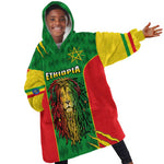 Personalised Ethiopia Kid Wearable Blanket Hoodie Men's Dreadlock Rasta Lion Headphones