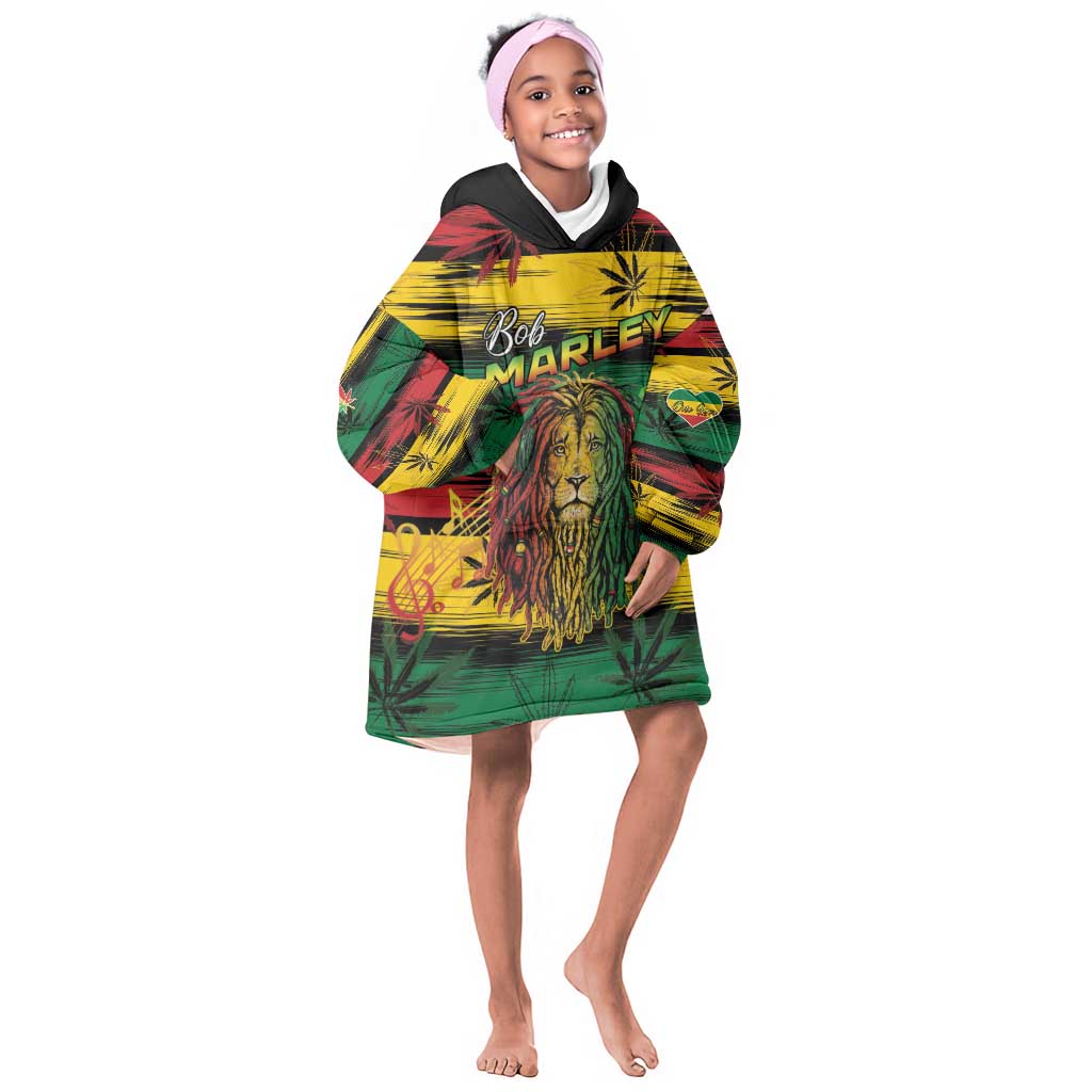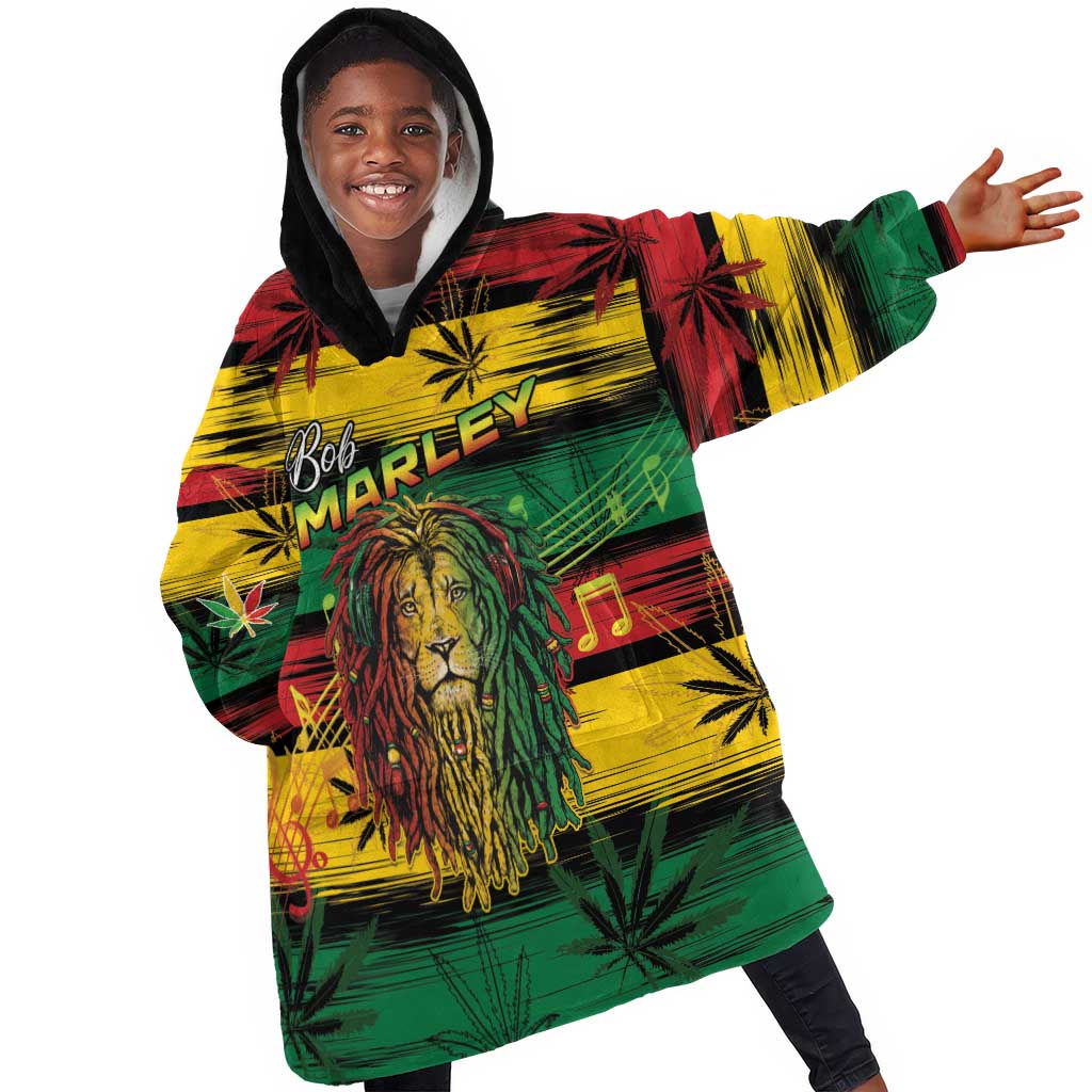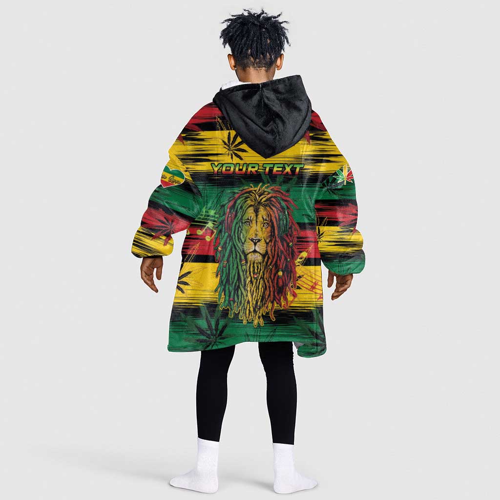 Personalised Rastafarian Lion Kid Wearable Blanket Hoodie Cannabis Leaf Pattern