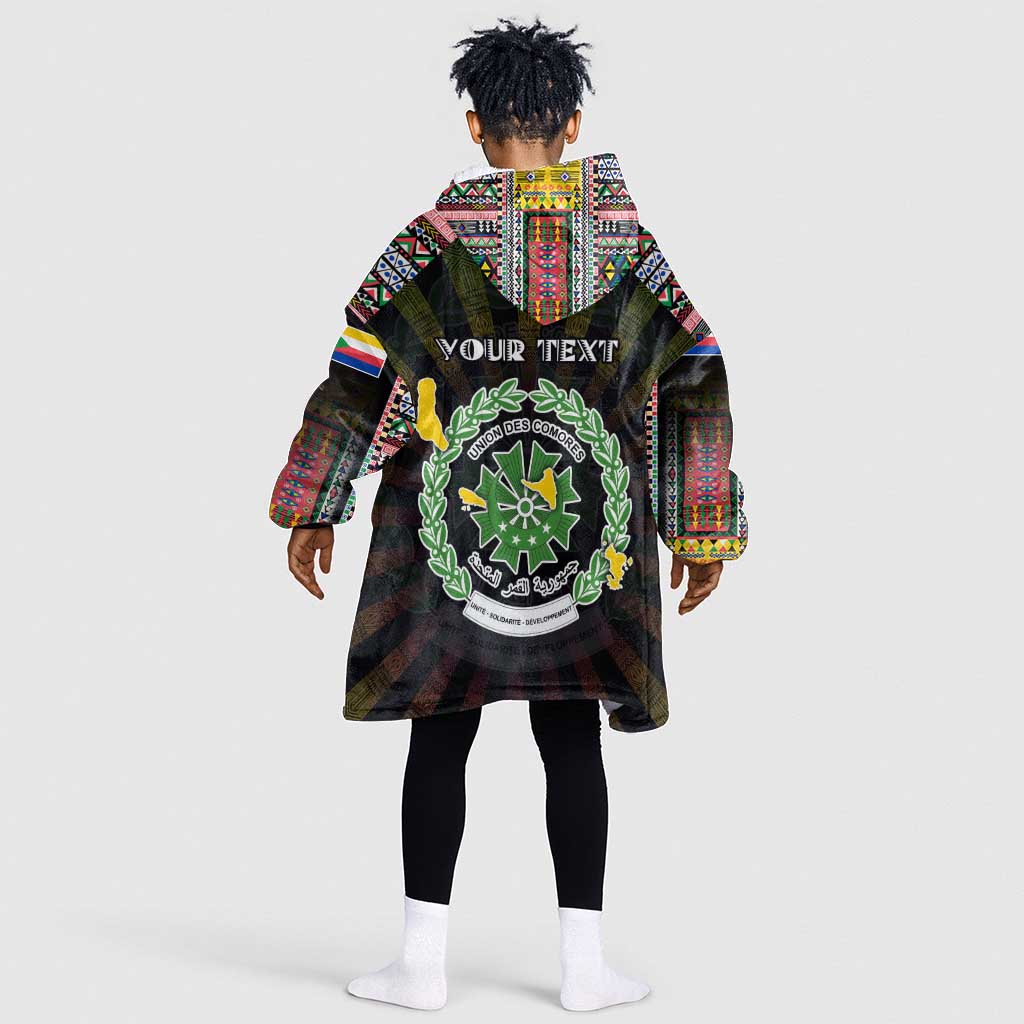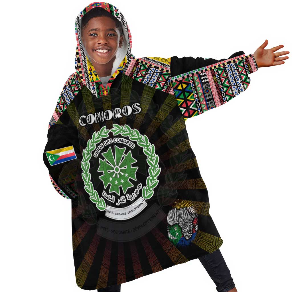 Personalized Comoros Roots Kid Wearable Blanket Hoodie African Pride in Fingerprint and Tribal Colors