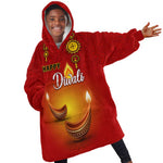 Personalized Diwali Festival Kid Wearable Blanket Hoodie with Diya and Paisley Pattern