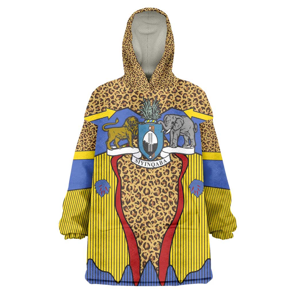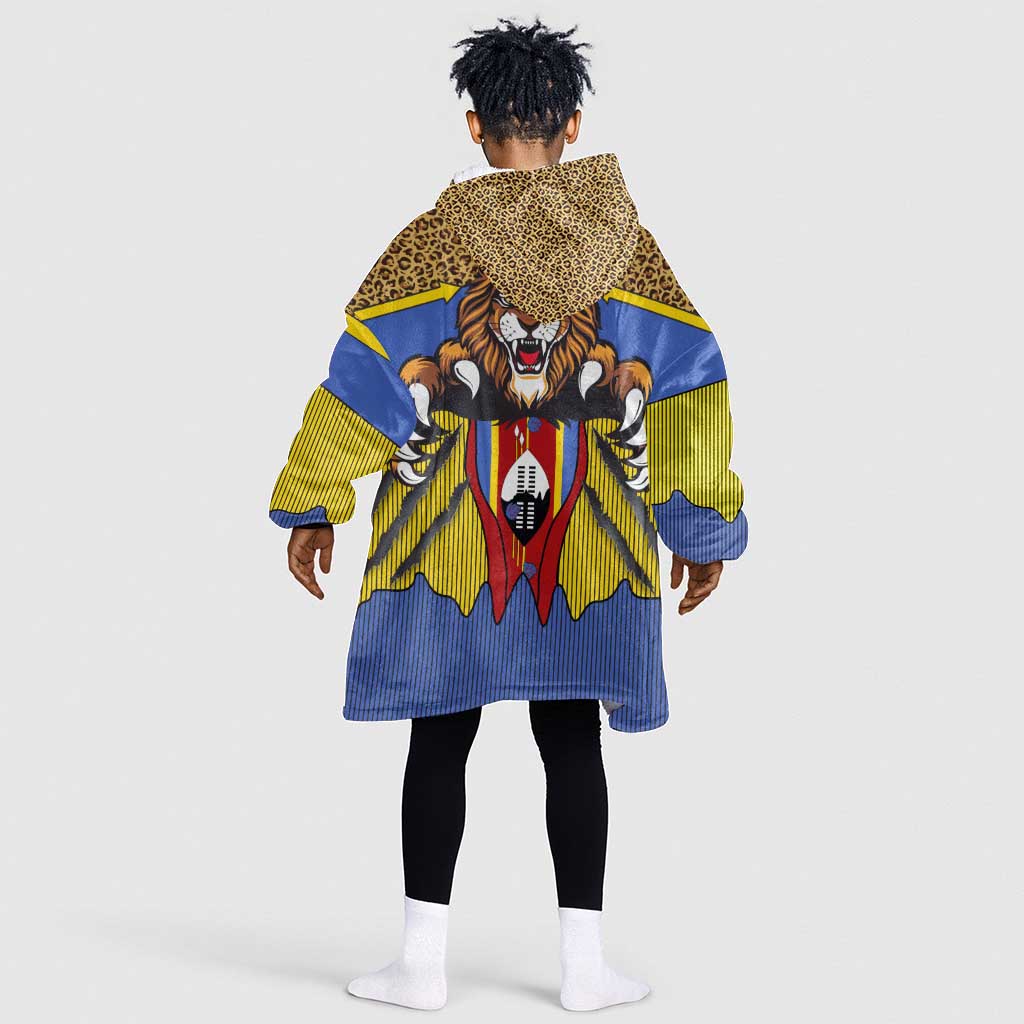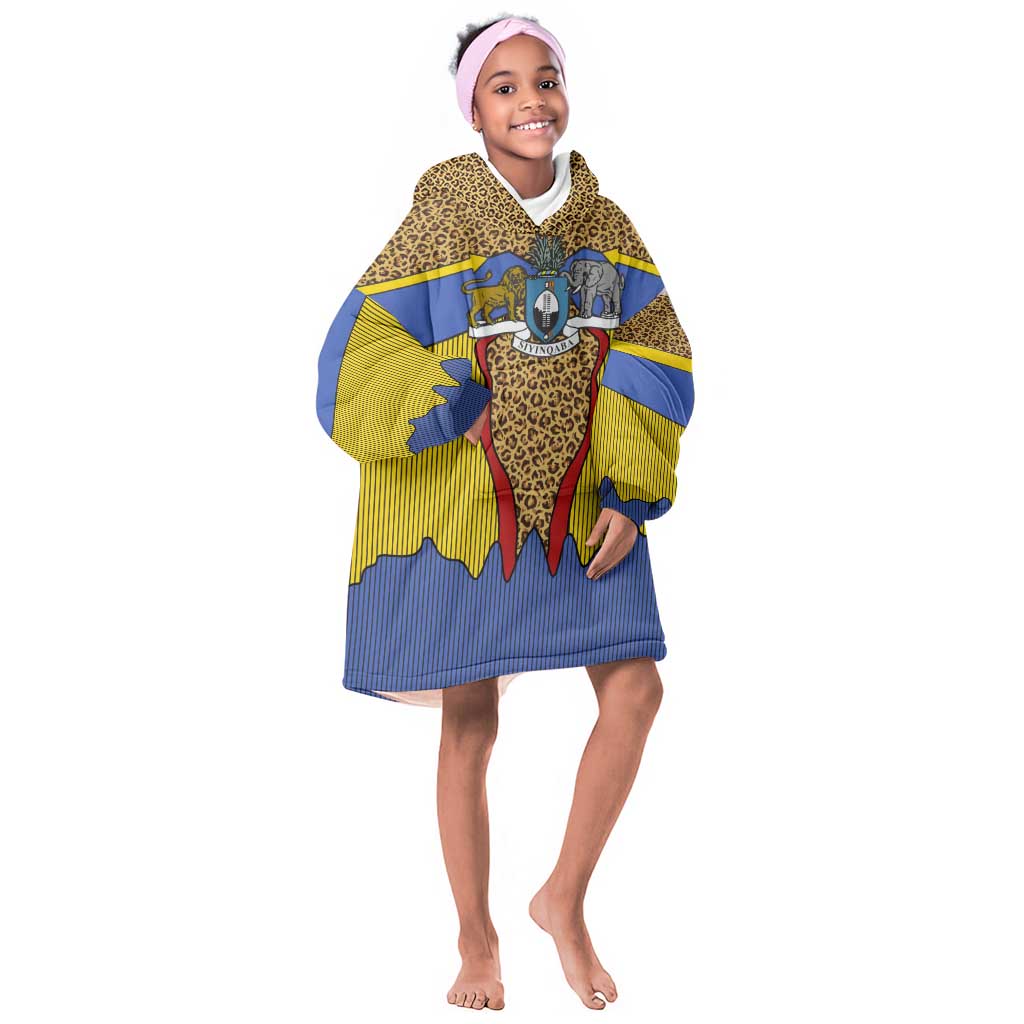 Swaziland Eswatini Kid Wearable Blanket Hoodie Coat of Arms Lion Elephant Shield Leopard Print Design