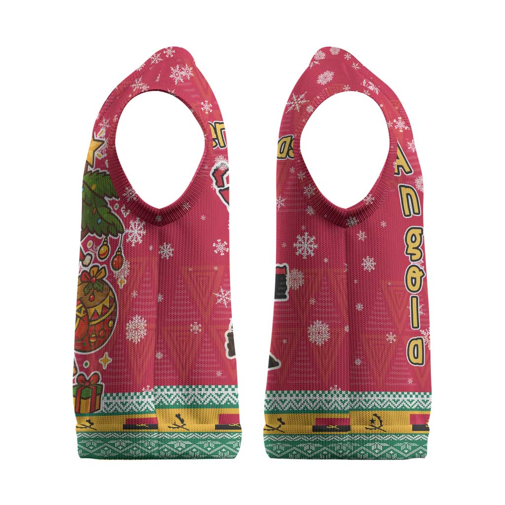 Angola Christmas Knitted V-Neck Vest Santa Gifts and National Flag Map Motif