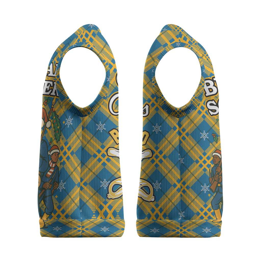 Buffalo Soldiers Christmas Knitted V-Neck Vest Blue Yellow Plaid Parade Illustration Design