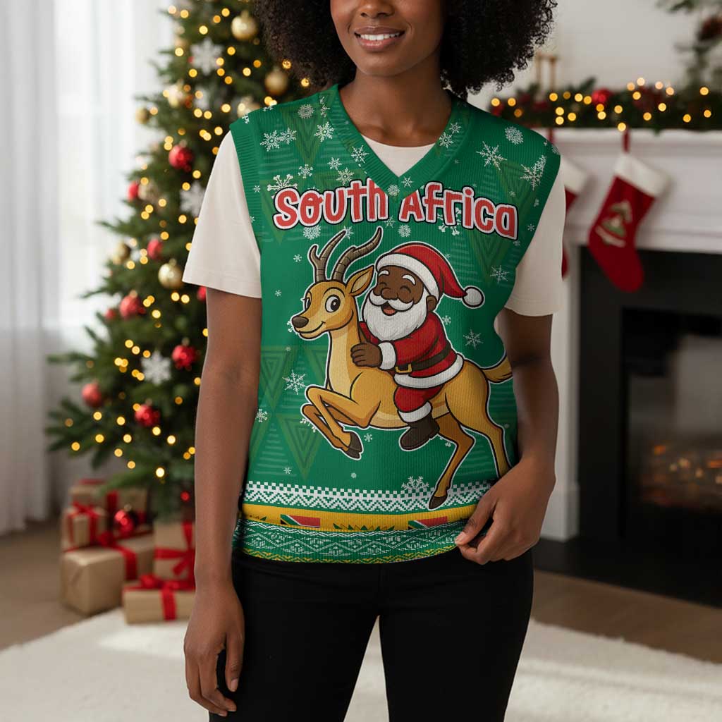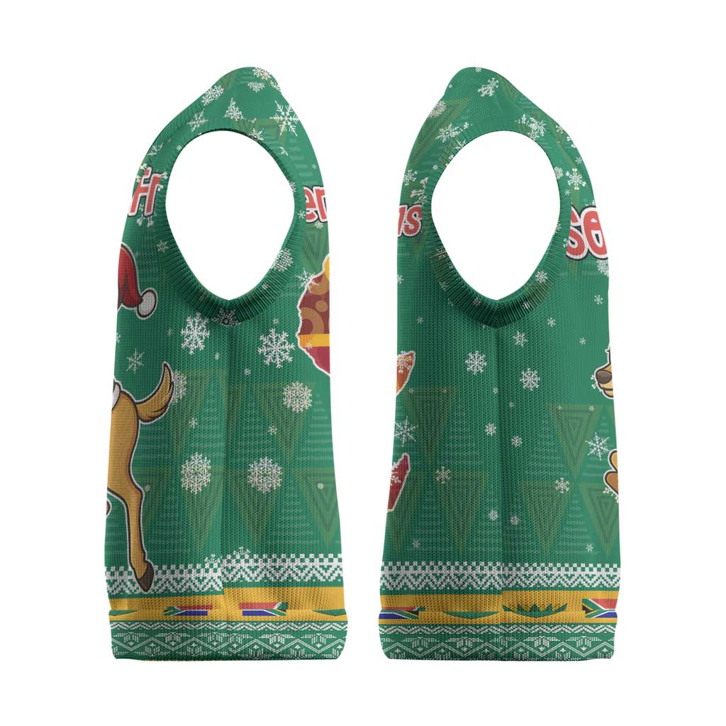 South Africa Christmas Knitted V-Neck Vest Santa Reindeer and Africa Map