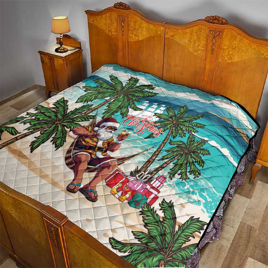 Afro Christmas in Liberia Quilt Santa Chill on Tropical Beach