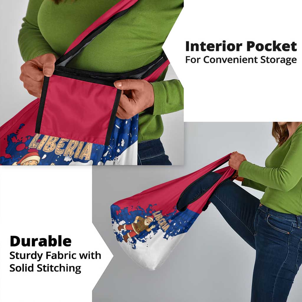 Liberia Christmas Grocery Bag Santa Claus Map Graphic and Red Blue Festive