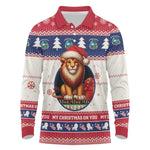 Liberia Christmas Long Sleeve Polo Shirt African Lion Santa