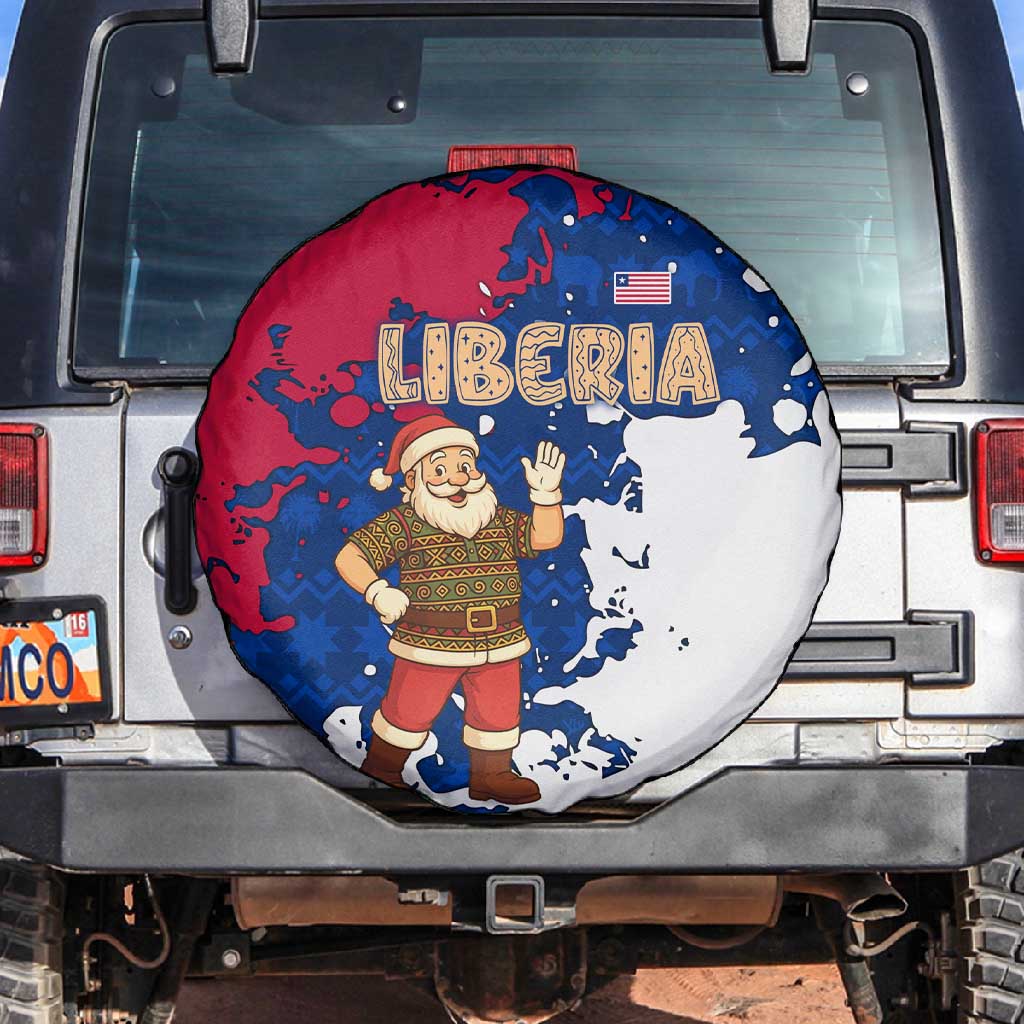 Liberia Christmas Spare Tire Cover Santa Claus Map Graphic and Red Blue Festive TS04