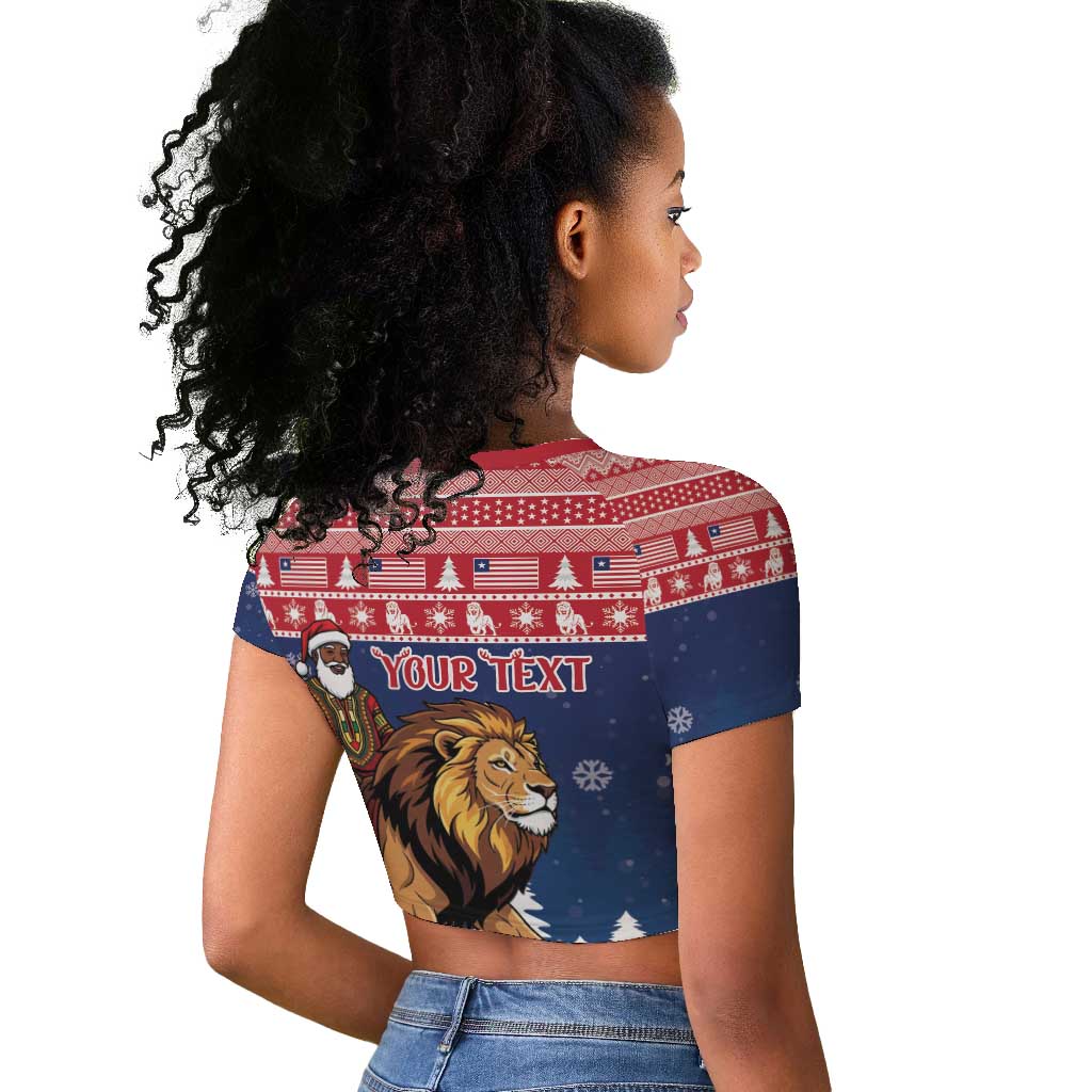 Personalized Afro Christmas in Liberia Raglan Cropped T shirt Black Santa Riding Lion - Merry Christmas