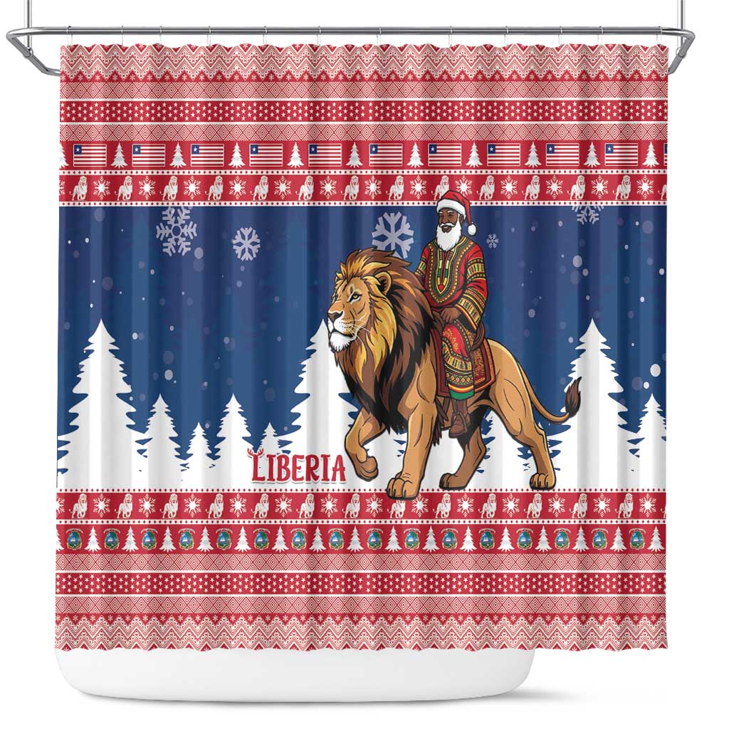 Afro Christmas in Liberia Shower Curtain Black Santa Riding Lion - Merry Christmas