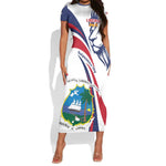 Liberia Independence Day Short Sleeve Bodycon Dress July 26 Lion Coat of Arms