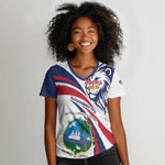 Liberia Independence Day Women V-Neck T-Shirt July 26 Lion Coat of Arms