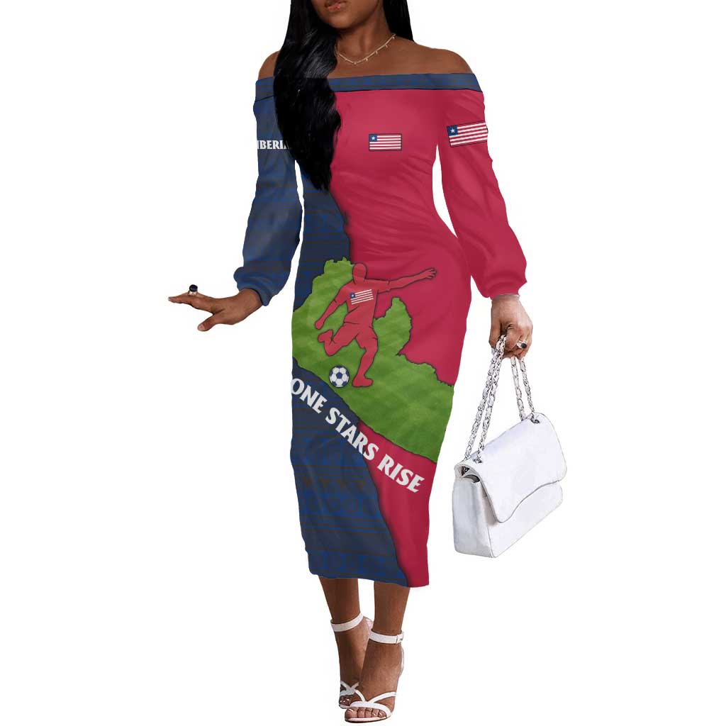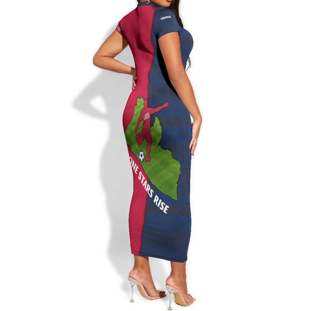 Liberia Lone Stars Rise Football Short Sleeve Bodycon Dress Map Graphic and National Flag
