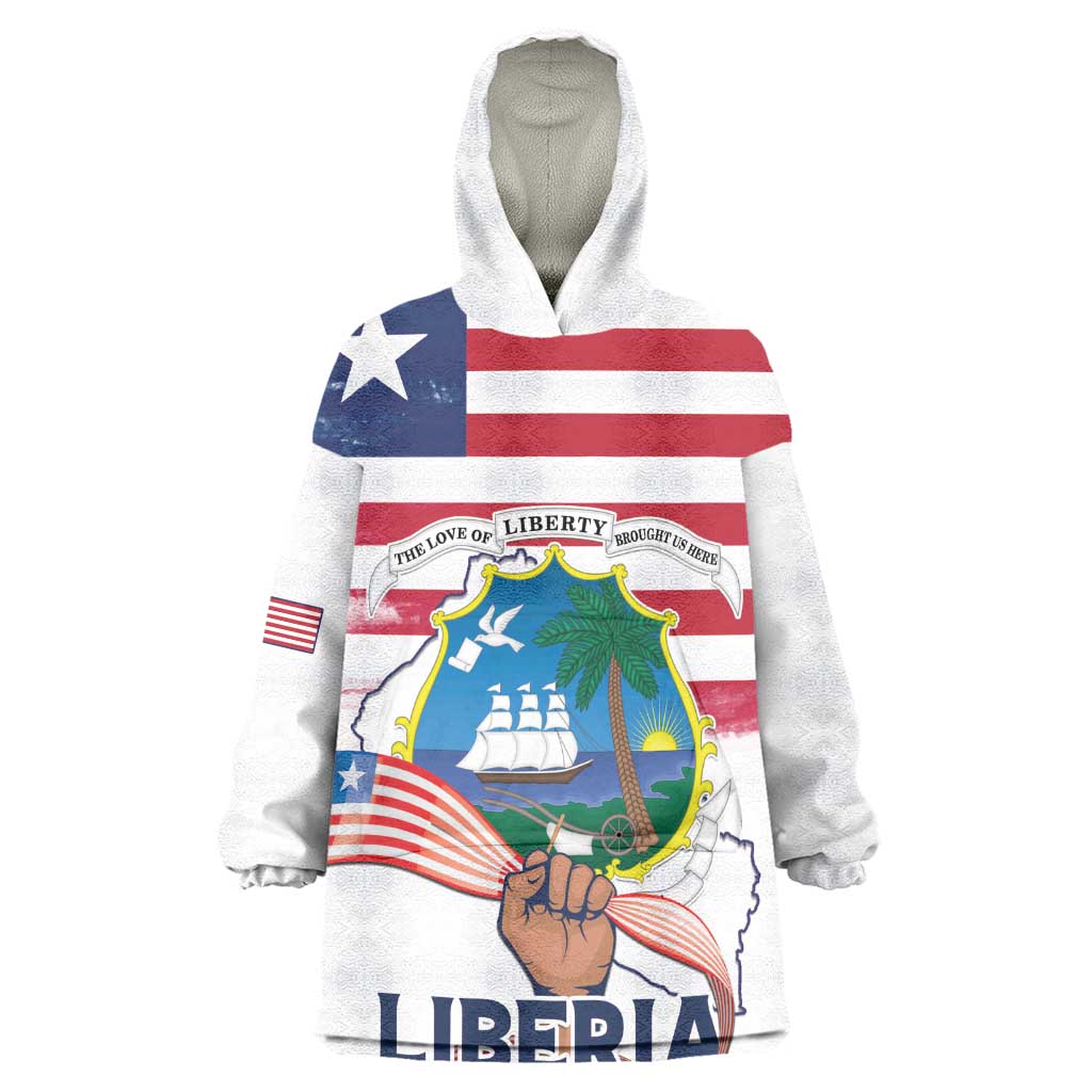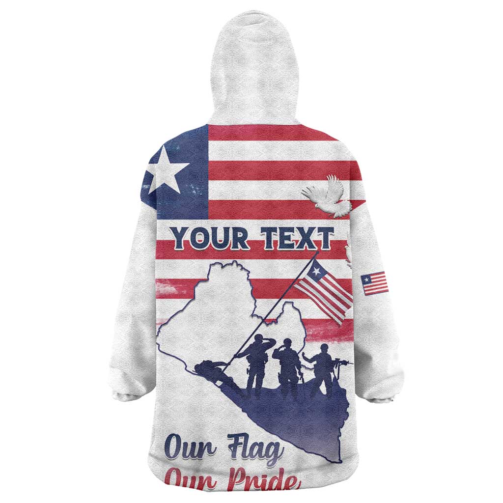 Personalised Liberia Flag Day Wearable Blanket Hoodie Coat Of Arms With Map