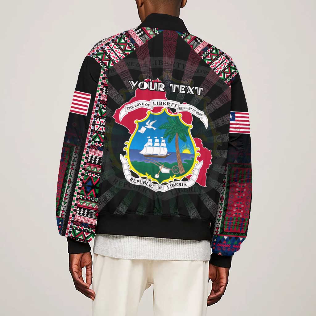 Personalized Liberia Roots Bomber Jacket African Pride in Fingerprint and Tribal Colors