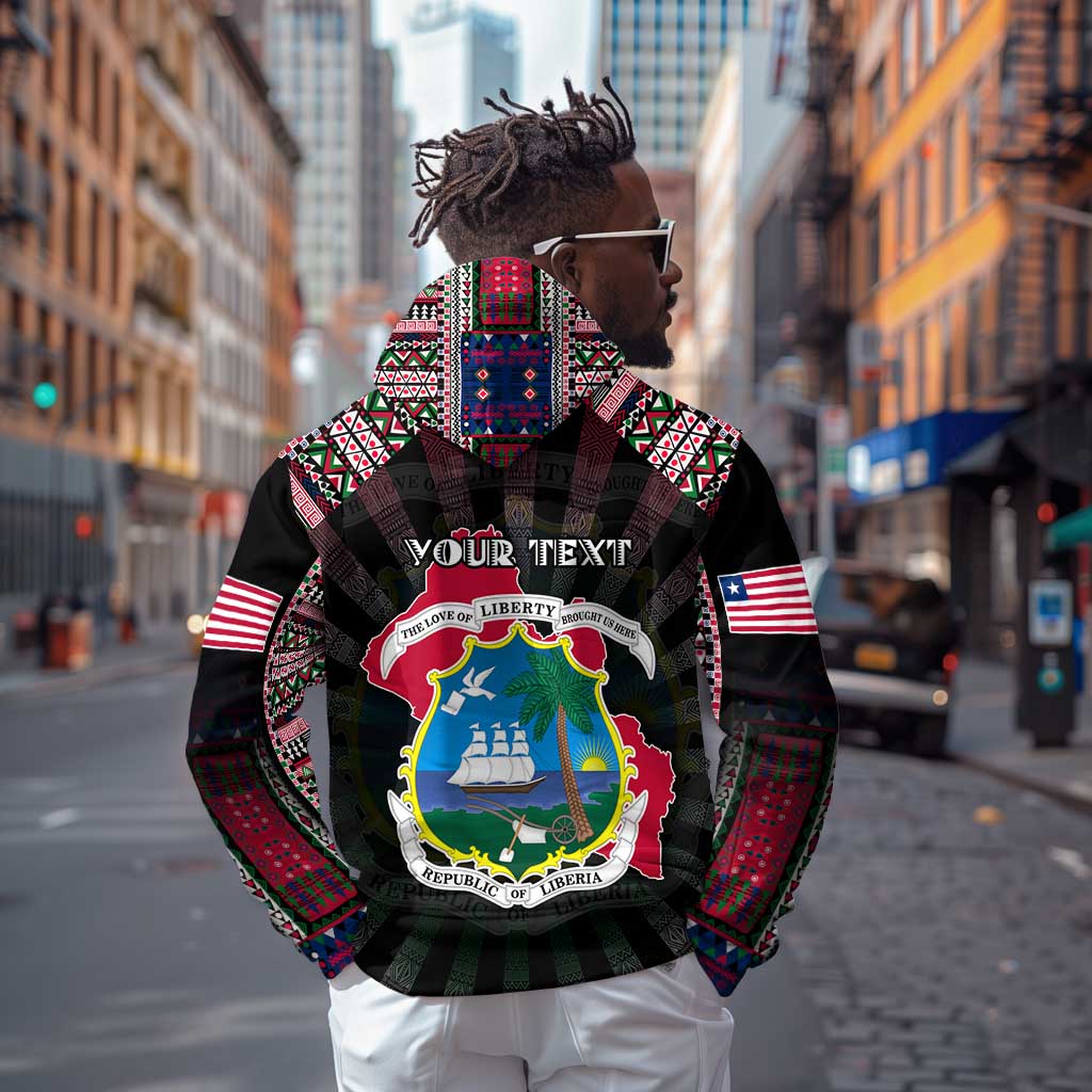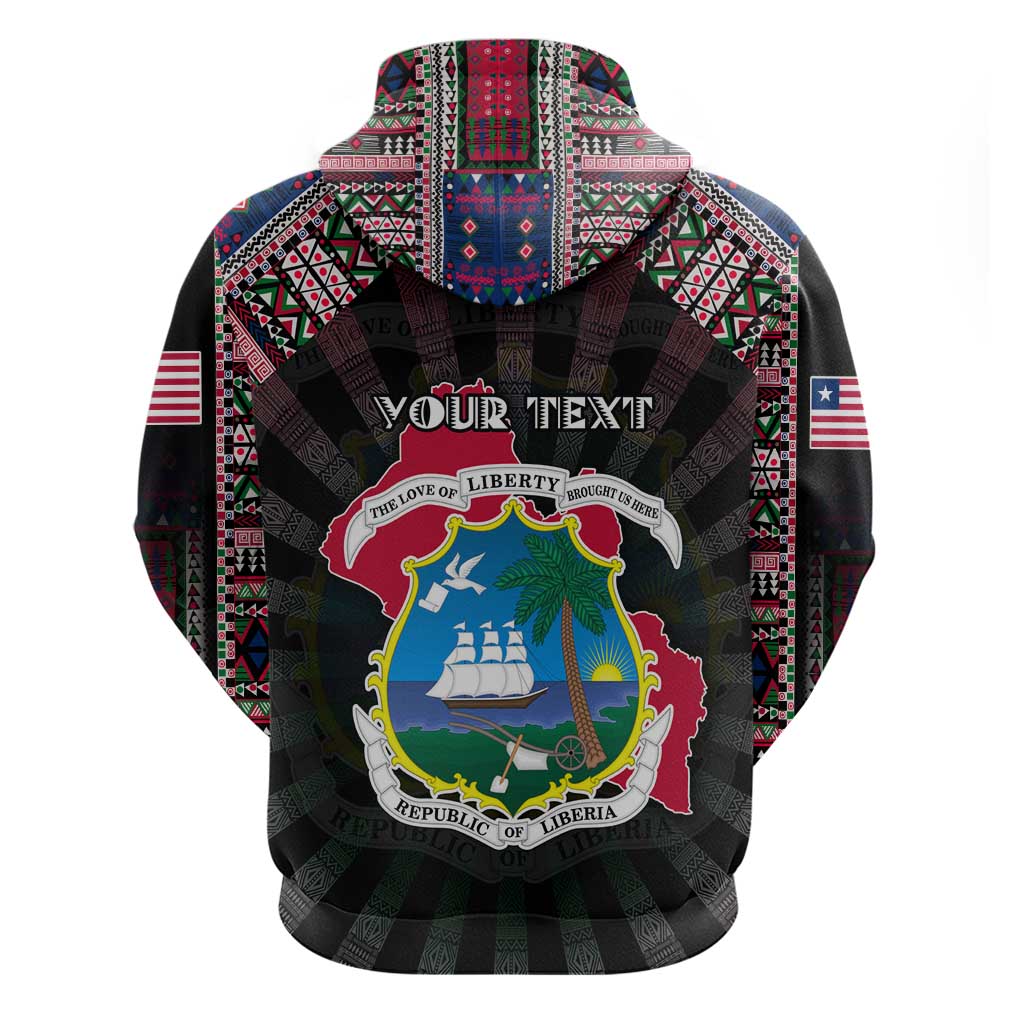 Personalized Liberia Roots Zip Hoodie African Pride in Fingerprint and Tribal Colors